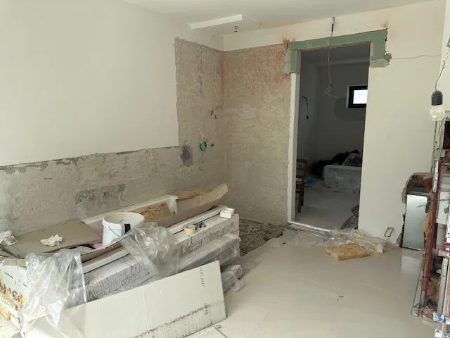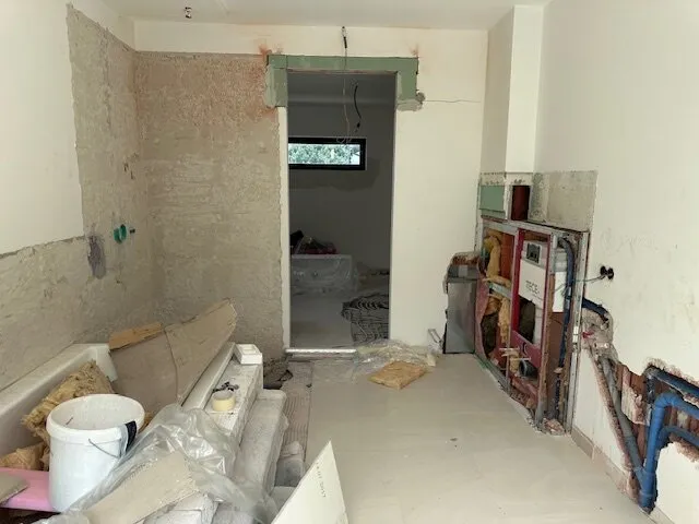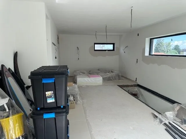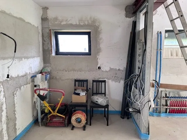 Innenräume OG: Durchdachter Plan mit zwei Schlafzimmern ( 29,97 m² und 11,38 m² ), einem Schrankraum und einem Badezimmer ( 13,09 m² ). Hier wurde bereits mit der schlüsselfertigen Ausführung begonnen.