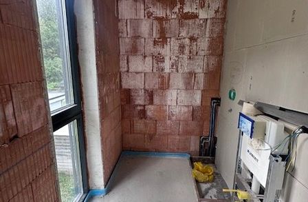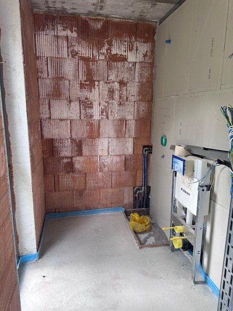 • Wasserauslässe in den Wänden vorbereitet