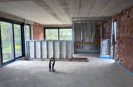• Fußbodenheizung verlegt, Estrich vorhanden
