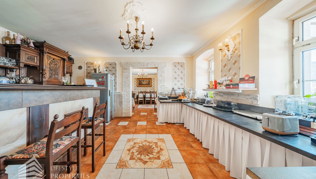 Auf dem Grundstück befindet sich die historische „Lambach Villa“ aus dem Jahr 1885, welche 2019 als Hotel-Restaurant neu eröffnet wurde. Das Gebäude verfügt über eine Gesamt-Nutzfläche von ca. 1.390 m² und ist sofort beziehbar.