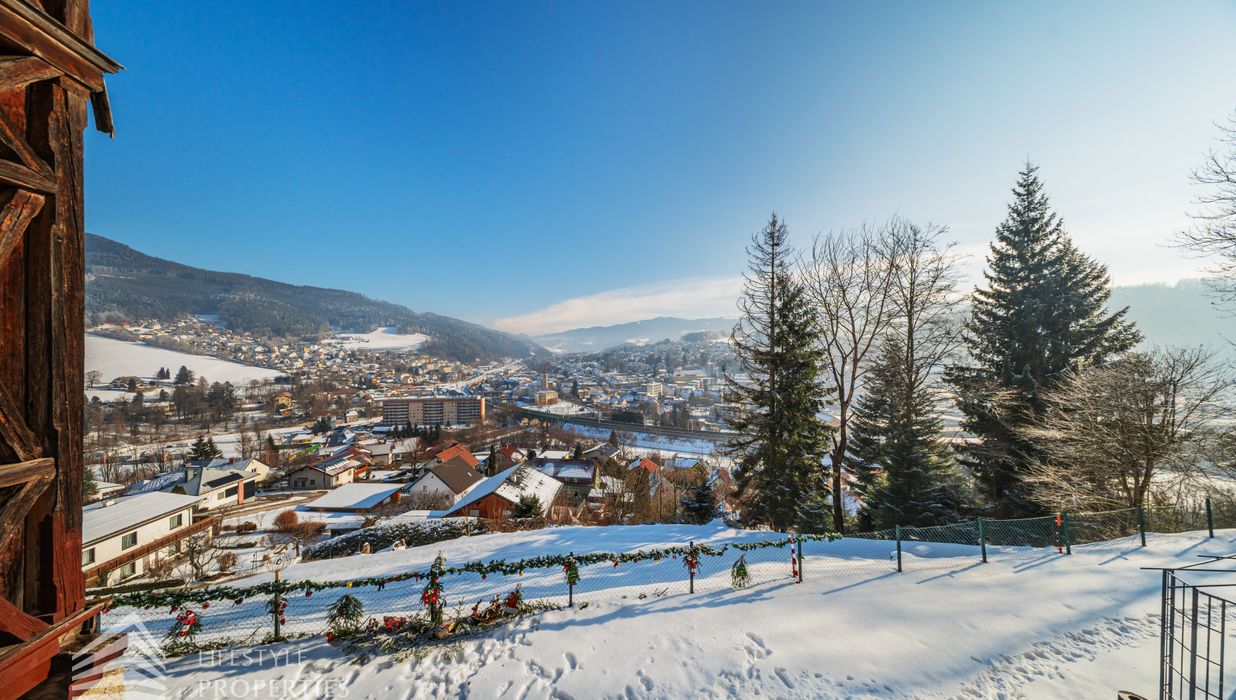 Zum Verkauf gelangt eine außergewöhnliche Liegenschaft mit rund 10.448 m² Grundstücksfläche – zur Gänze Bauland – in erhöhter Aussichtslage über Mürzzuschlag mit freiem Blick Richtung Stuhleck.