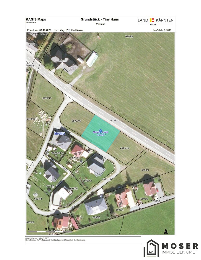 Das Tiny Haus befindet sich neben der Bundesstraße auf dem Grundstück 6973/15 , welches ein grundbücherlich verbüchertes Gesamtausmaß von 957m² ausweißt.