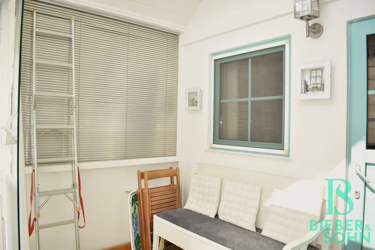 Im Erdgeschoss steht ein Wohnraum inklusive neuer Design- Küchenzeile mit Ausgang auf die verglaste (mobile Glaselemente) Terrasse und zur Bootsanlegestelle, ein Bad mit Dusche und WC sowie ein Vorraum zur Verfügung.