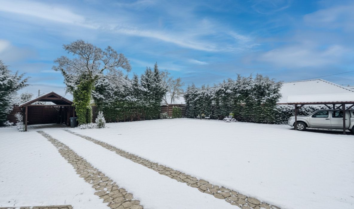 A gyönyörű, tágas teraszon egy 4x2 méteres, beépített medence kapott helyet, amely tökéletes lehet egy frissítő csobbanásra a szaunázást követően – például, ha a pincében szauna kerül kialakításra . A kertben két kocsibeálló és egy fúrt kút is rendelkezésre áll.