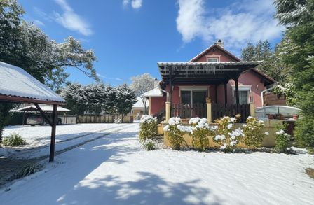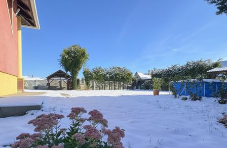 A gyönyörű, tágas teraszon egy 4x2 méteres, beépített medence kapott helyet, amely tökéletes lehet egy frissítő csobbanásra a szaunázást követően – például, ha a pincében szauna kerül kialakításra . A kertben két kocsibeálló és egy fúrt kút is rendelkezésre áll.