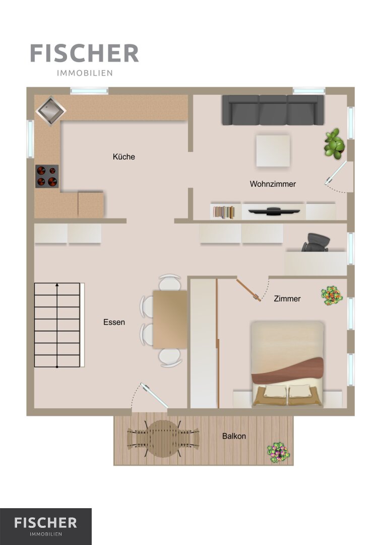 Der Balkon bietet Ihnen einen Ausblick ins Grüne – perfekt, um die frische Luft und die Ruhe der Natur zu genießen. Perfekt zur Entspannung an warmen Sommertagen bei einer Tasse Kaffee oder einem Glas Wein am Abend.