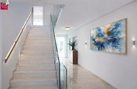 Auf rund 690 m² Wohnfläche über drei Ebenen entfaltet sich ein Zusammenspiel aus Licht, Weite und exklusiven Materialien.