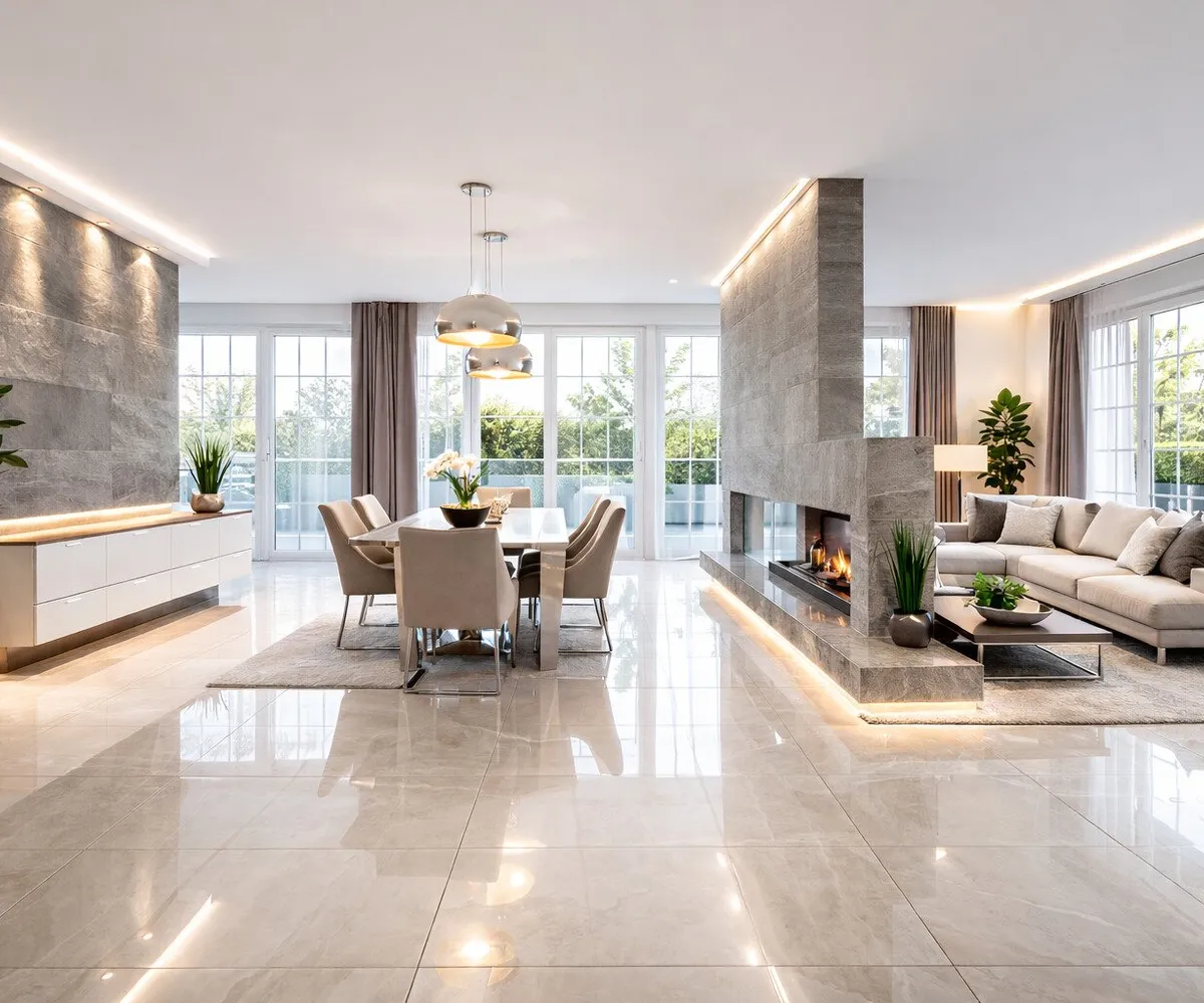 • Hochwertige Bodenbeläge aus Parkett, Marmor und Naturstein