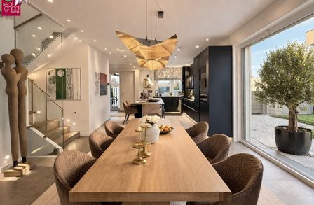 Auf rund 230 m² Wohnnutzfläche entfaltet sich ein offenes, klar strukturiertes Wohnkonzept mit fließenden Übergängen zwischen Innen- und Außenbereich.