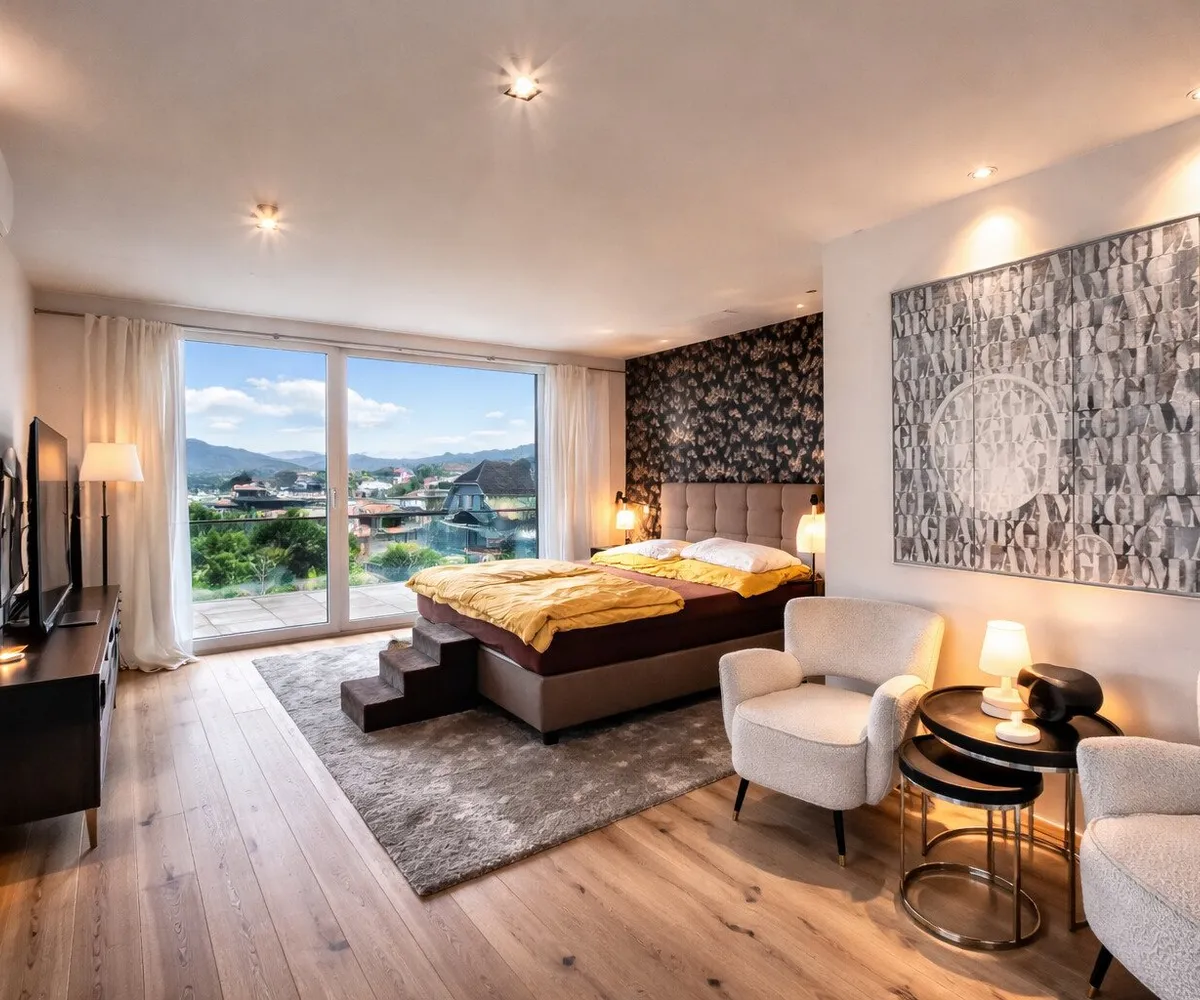 Klimatisierter Masterbereich mit Garderobe, Terrasse & hochwertigem Bad