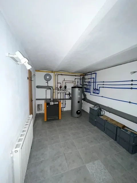 Im Erdgeschoß befindet sich Eingangsbereich mit einem zentralen Vorraum, eine Wohnküche mit einem gemütlichen Kachelofen sowie dem Ausgang zu einer Terrasse, ein großzügiger Wohn- und Essbereich mit direktem Zugang zur Gartenterrasse, ein Badezimmer mit Dusche und WC sowie ein Abstellraum.