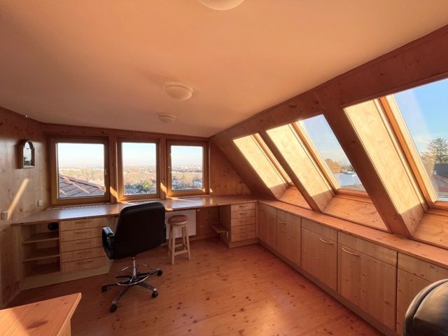 Das TURMGESCHOSS bietet einen TRAUMHAFTEN AUSBLICK über ganz Perchtoldsdorf bis nach Wien. Dieser sehr besondere Bereich bietet ausreichen Platz für Ihre Gäste, als Hobby-Raum oder für Ihr Home-Office.