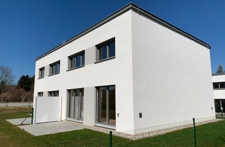 Das Erdgeschoss besteht aus einem lichtdurchfluteten offenen Wohn-, Koch- und Essbereich mit Zugang auf die Terrasse und in den Garten. Auf dieser Ebene befinden sich das Vorzimmer, ein Gäste-WC, der Technikraum und ein zusätzlicher Abstellraum, der auch gut als Büro genutzt werden kann. Im Obergeschoss befinden sich drei getrennt begehbare Schlafzimmer mit einer Galerie (Option für Schrankraum), sowie ein großzügiges Badezimmer mit Fenster. Die Terrasse und der südseitig ausgerichtete Garten laden zum Entspannen und Seele baumeln lassen ein.