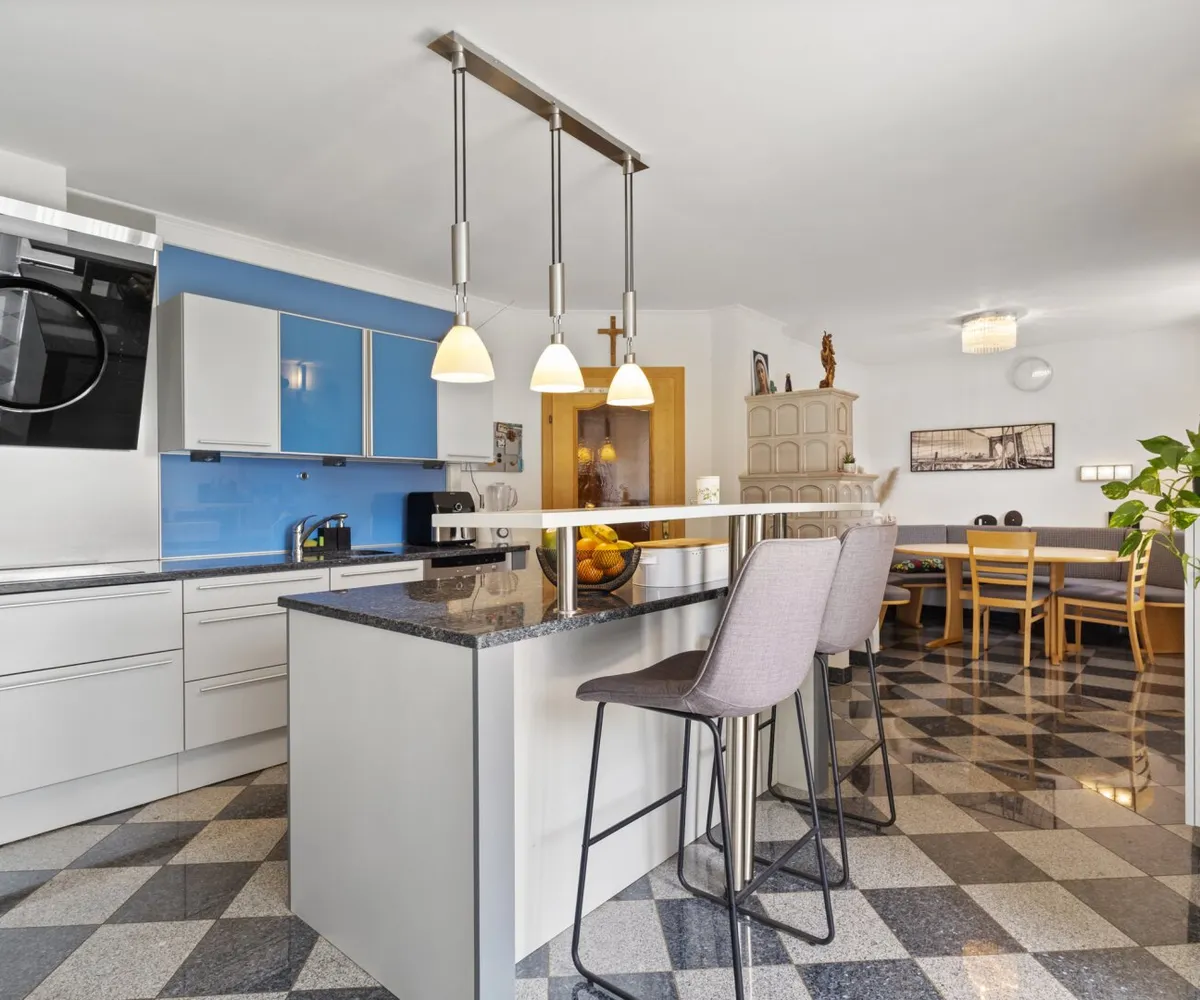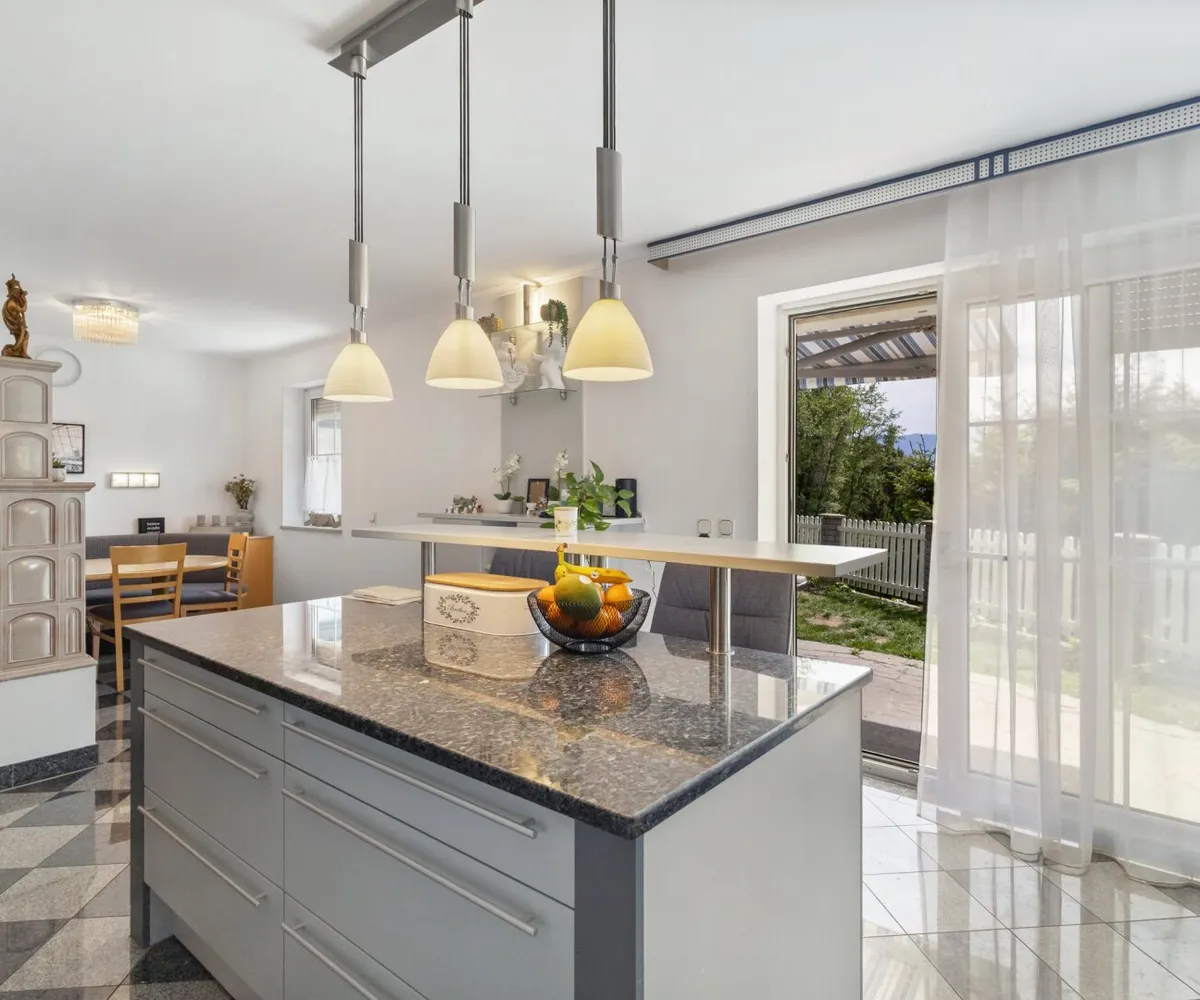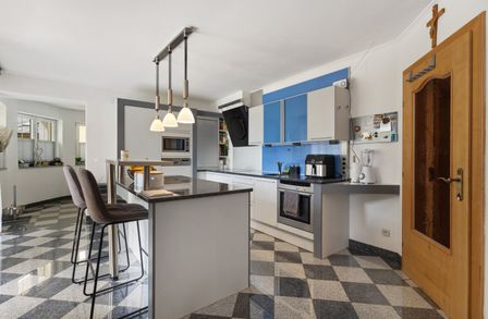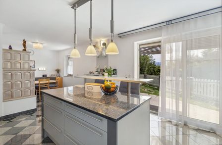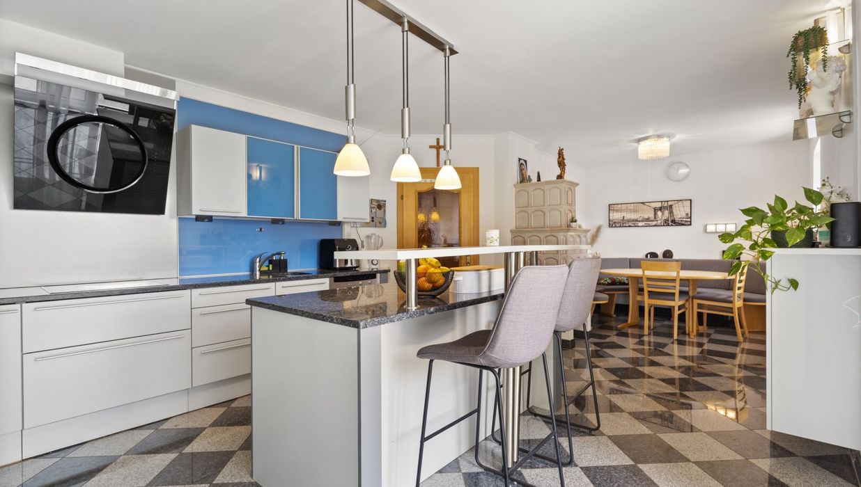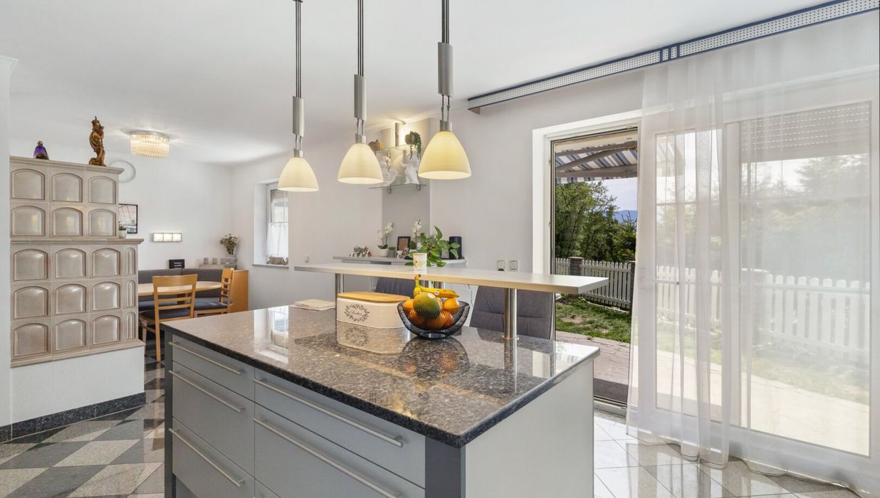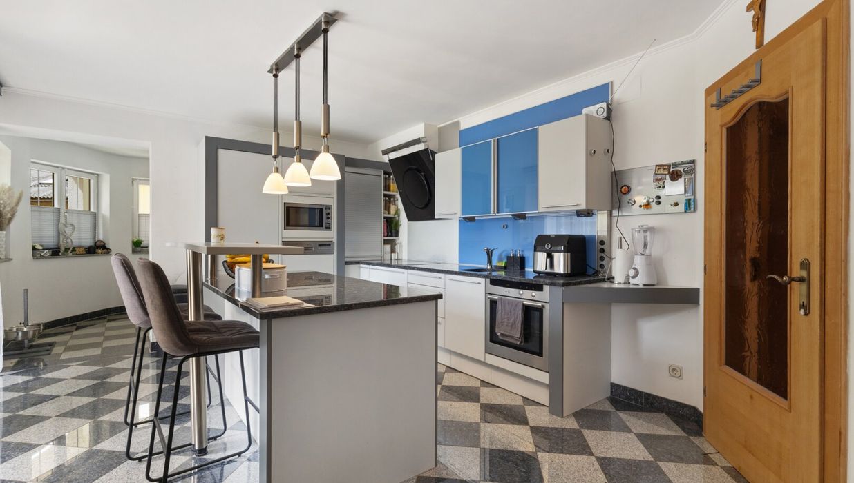 Das Herzstück der Immobilie ist die lichtdurchflutete Wohnküche, die mit einer Einbauküche ausgestattet ist. Hier können Sie kreative Kochabende mit Freunden und Familie verbringen und gleichzeitig die gesellige Atmosphäre genießen. Der offene Küchenbereich schafft eine einladende Verbindung zum Wohnraum, in dem ein Kamin für Gemütlichkeit an kühlen Abenden sorgt. 2023 wurde ein neuer Pelletsofen und Warmwasserspeicher eingebaut.