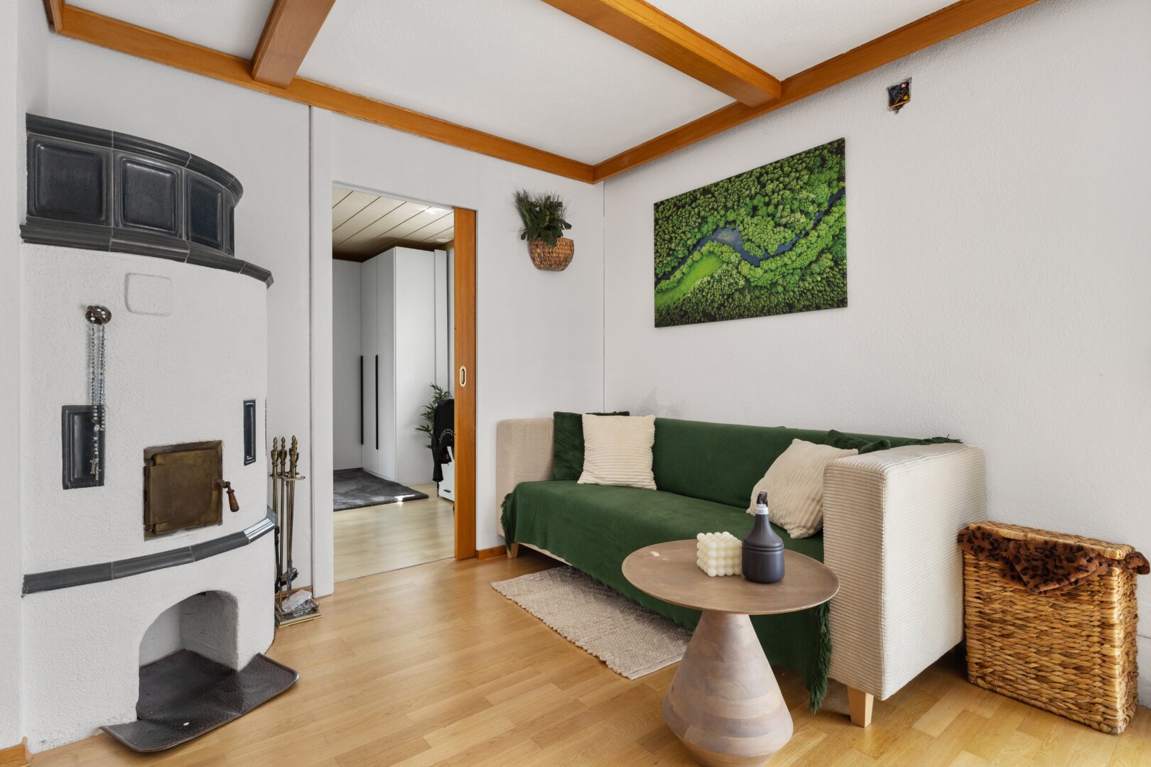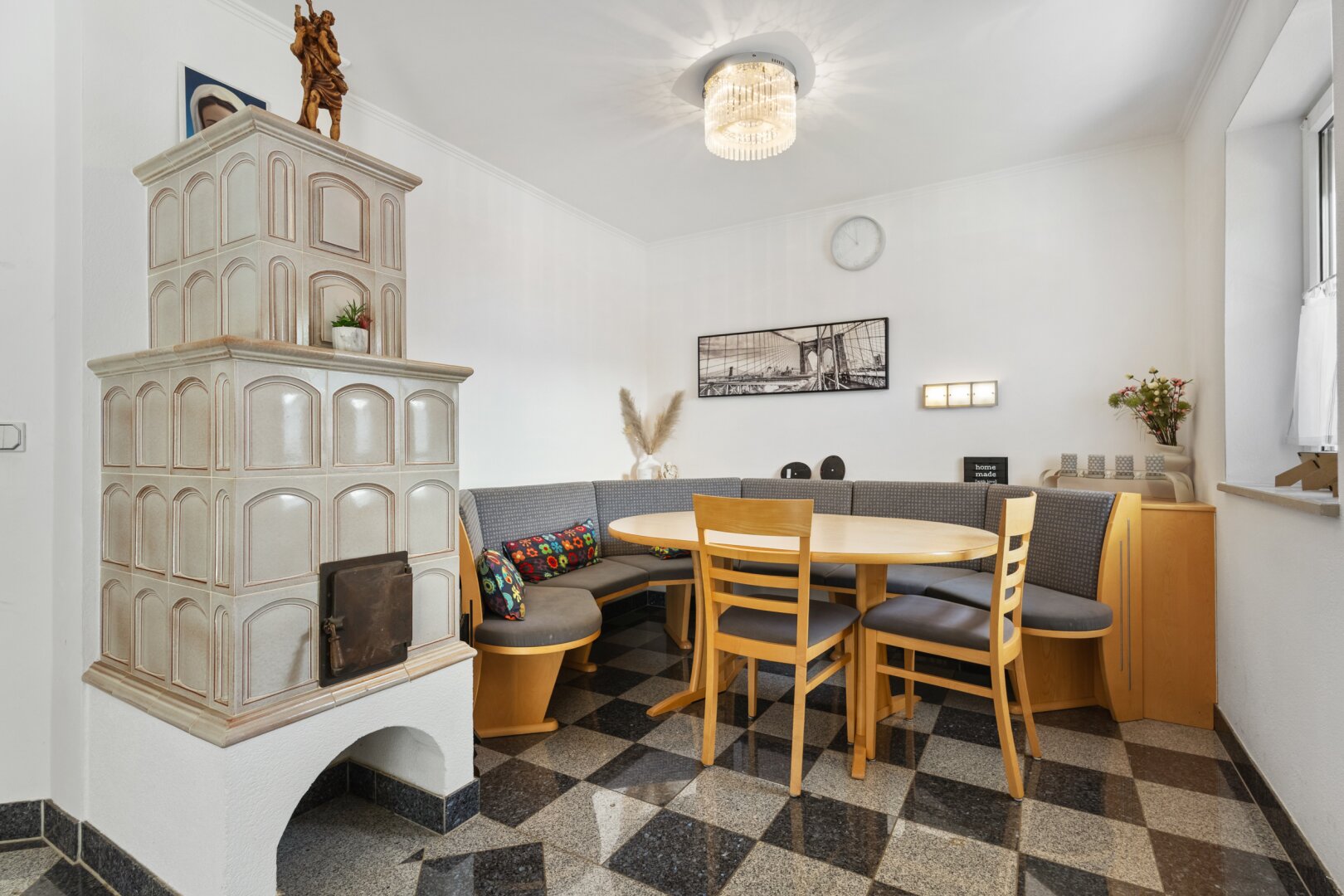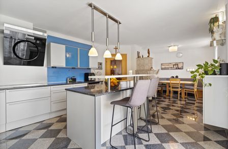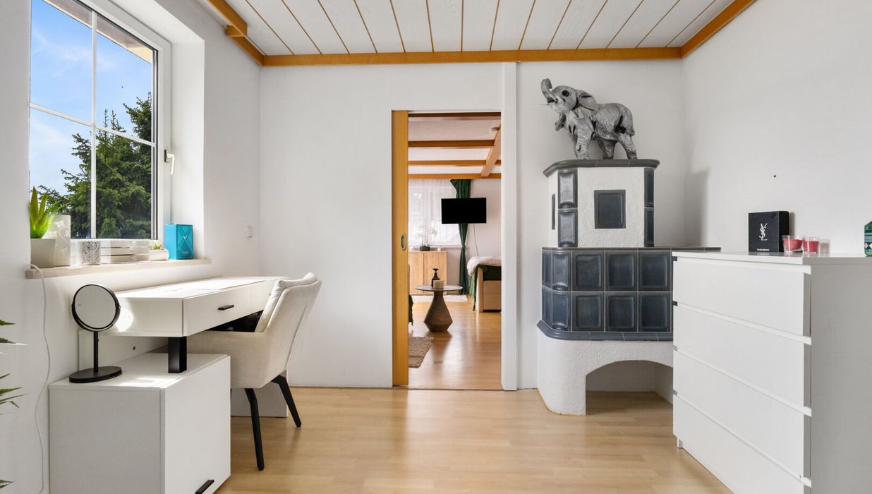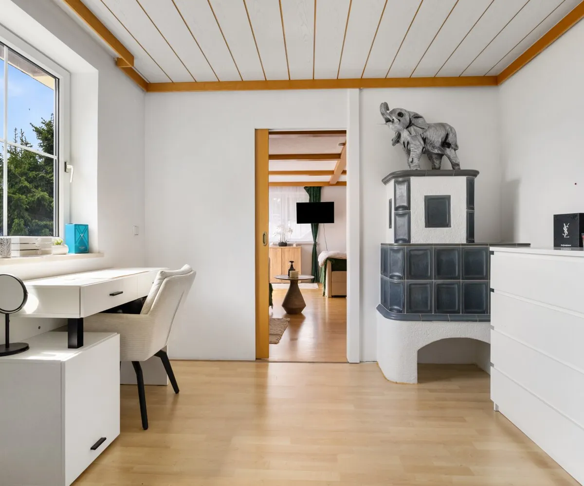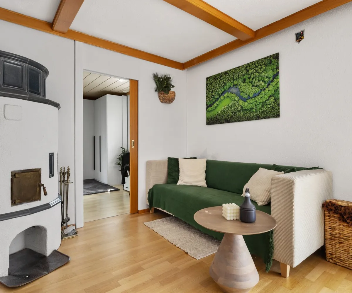Das Herzstück der Immobilie ist die lichtdurchflutete Wohnküche, die mit einer Einbauküche ausgestattet ist. Hier können Sie kreative Kochabende mit Freunden und Familie verbringen und gleichzeitig die gesellige Atmosphäre genießen. Der offene Küchenbereich schafft eine einladende Verbindung zum Wohnraum, in dem ein Kamin für Gemütlichkeit an kühlen Abenden sorgt. 2023 wurde ein neuer Pelletsofen und Warmwasserspeicher eingebaut.