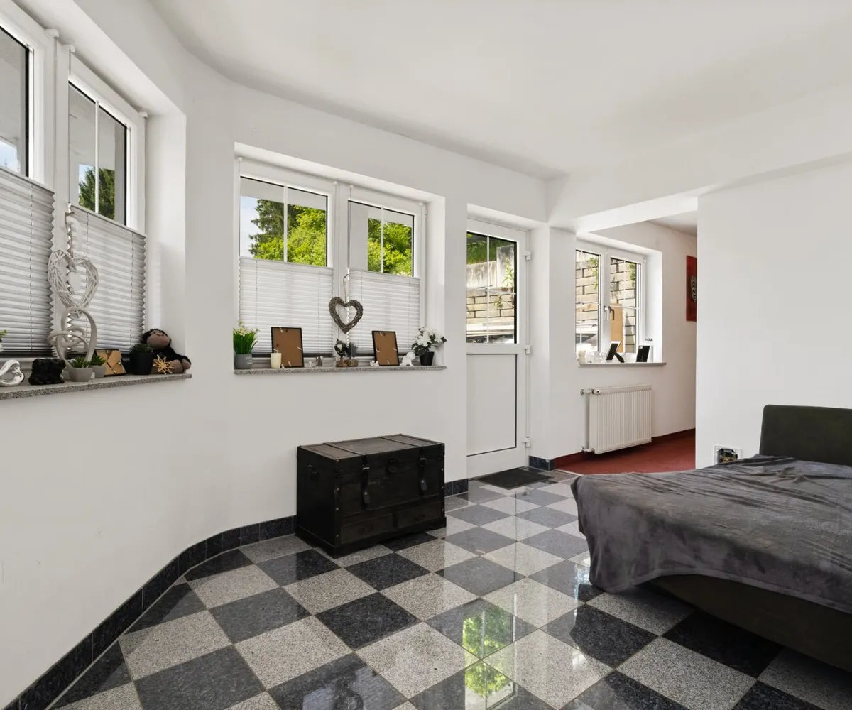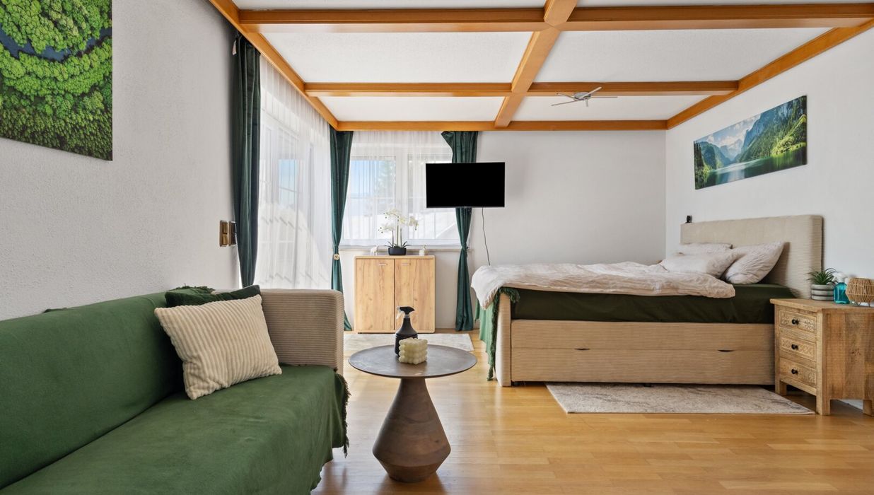 Die zahlreichen Fenster und der Zugang zur Südterrasse lassen viel Tageslicht herein und bieten einen atemberaubenden Blick auf die umliegenden Berge. Stellen Sie sich vor, wie Sie auf Ihrem Balkon oder Ihrer Terrasse sitzen, die frische Bergluft genießen und den herrlichen Fernblick auf die Landschaft bewundern – hier wird der Alltag zur Erholung.