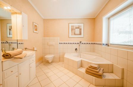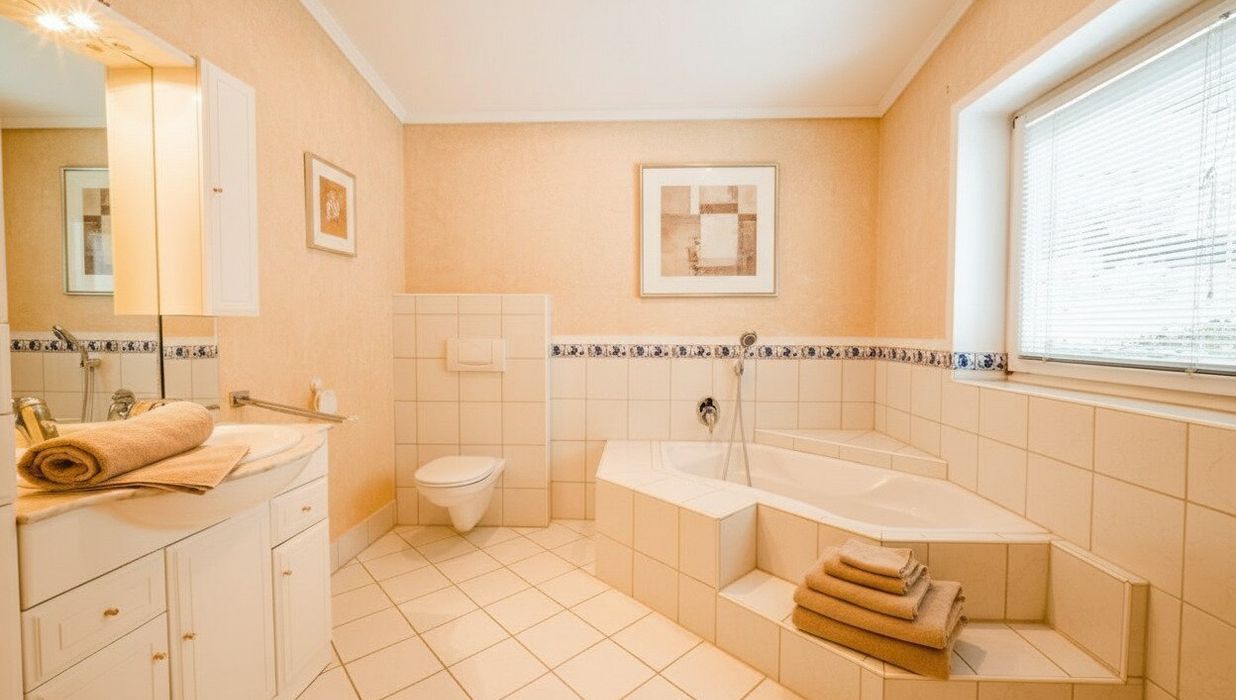 Das Badezimmer präsentiert sich als ein weiteres Highlight dieser Immobilie. Hochwertig ausgestattet mit einer Badewanne, Dusche und einem Waschtisch . Ein Fenster sorgt zudem für optimales Tageslicht.