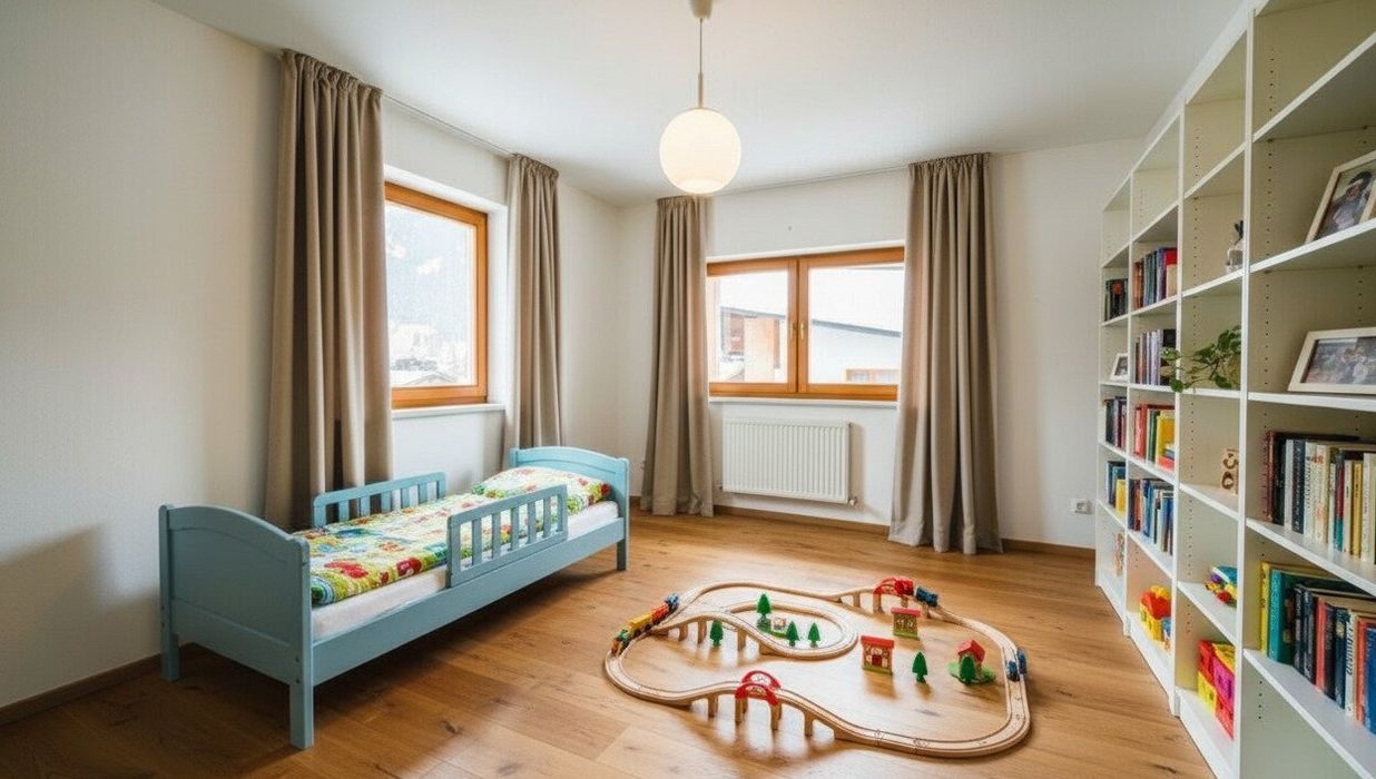 Mit insgesamt 5 lichtdurchfluteten Zimmern bietet diese Immobilie ausreichend Platz für individuelle Gestaltung und Rückzugsmöglichkeiten. Die durchdachte Raumaufteilung sorgt dafür, dass jedes Familienmitglied seinen eigenen Rückzugsort findet, während der offen gestaltete Wohnbereich einladend für gesellige Abende ist.