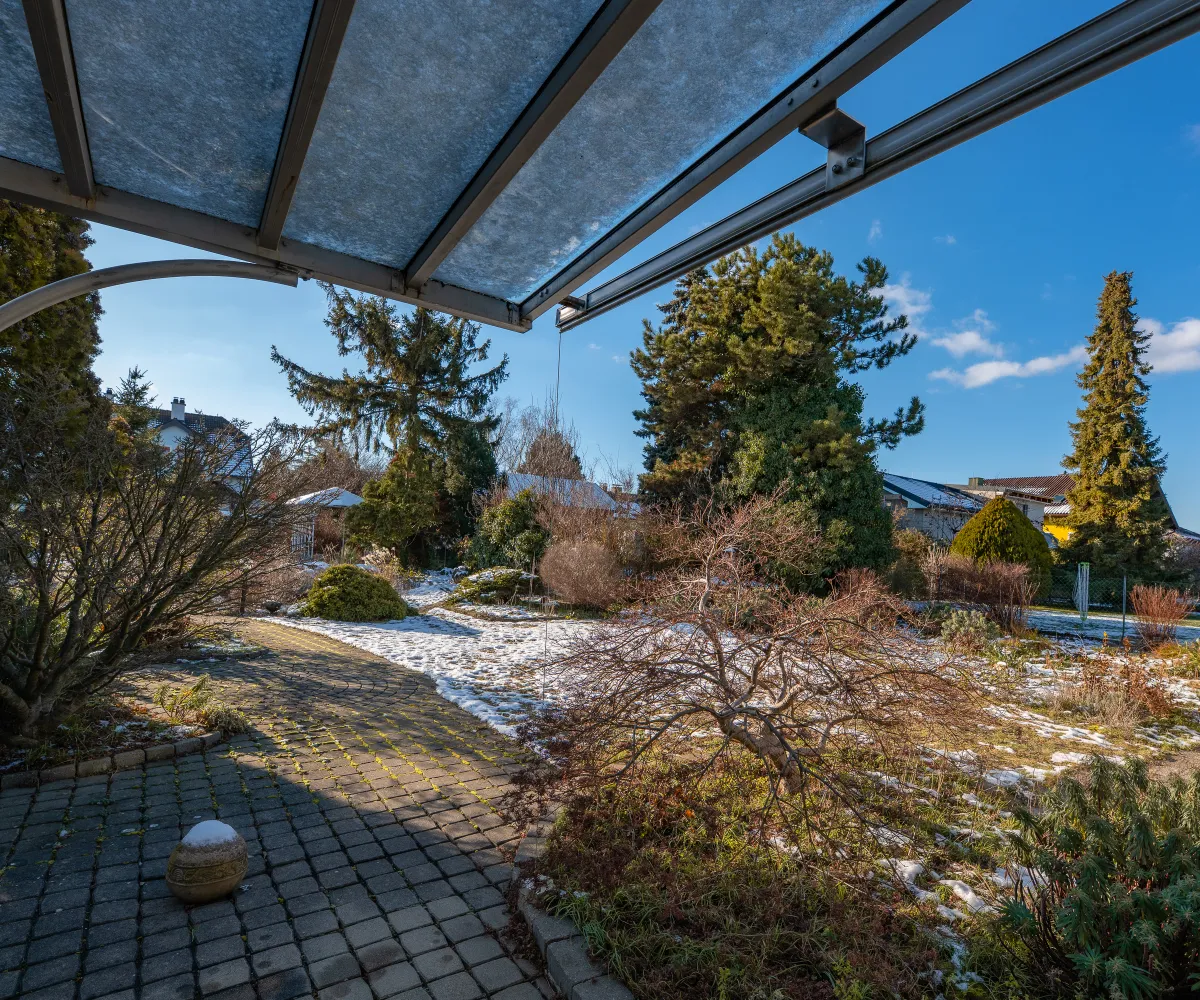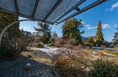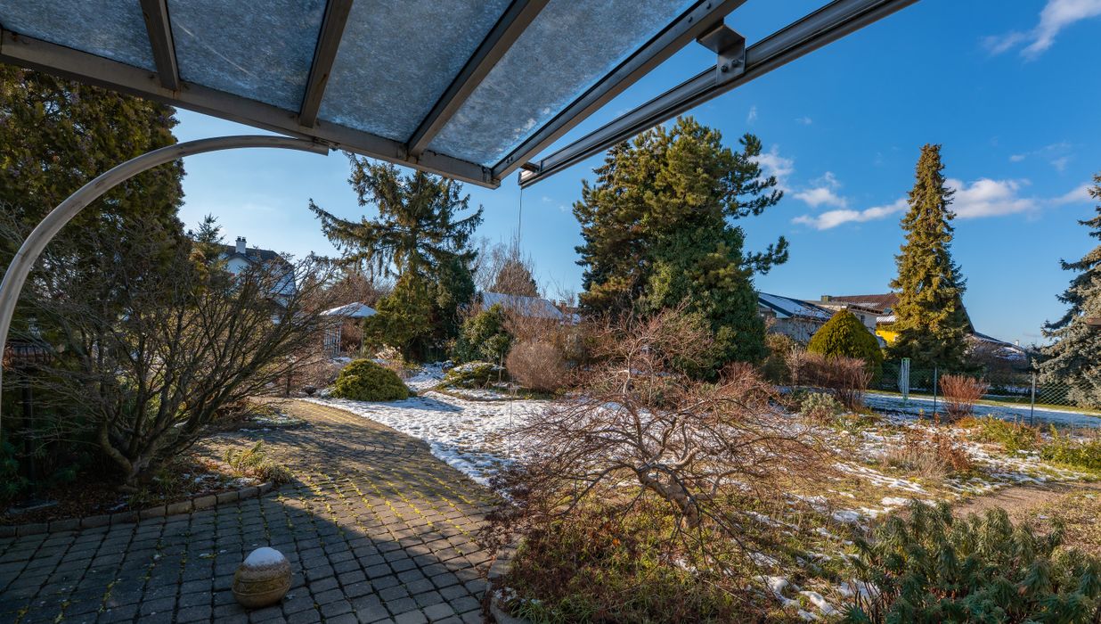 Im Wintergarten können Sie die Sonne genießen, während Sie den Blick über den großen Garten schweifen lassen. Er ist der ideale Ort, um auch in der kühleren Jahreszeit einen überdachten und hellen Bereich nützen zu können, wenn die Gartensaison noch nicht begonnen hat.