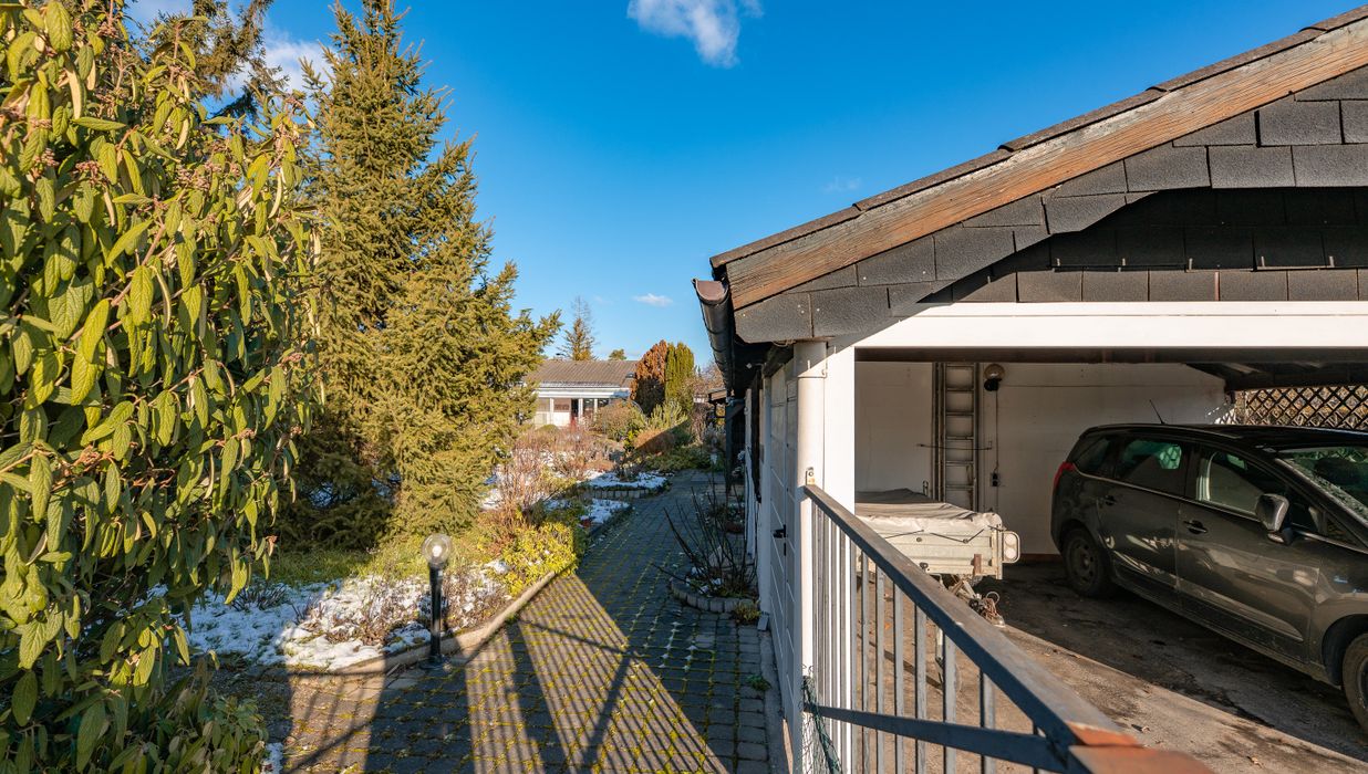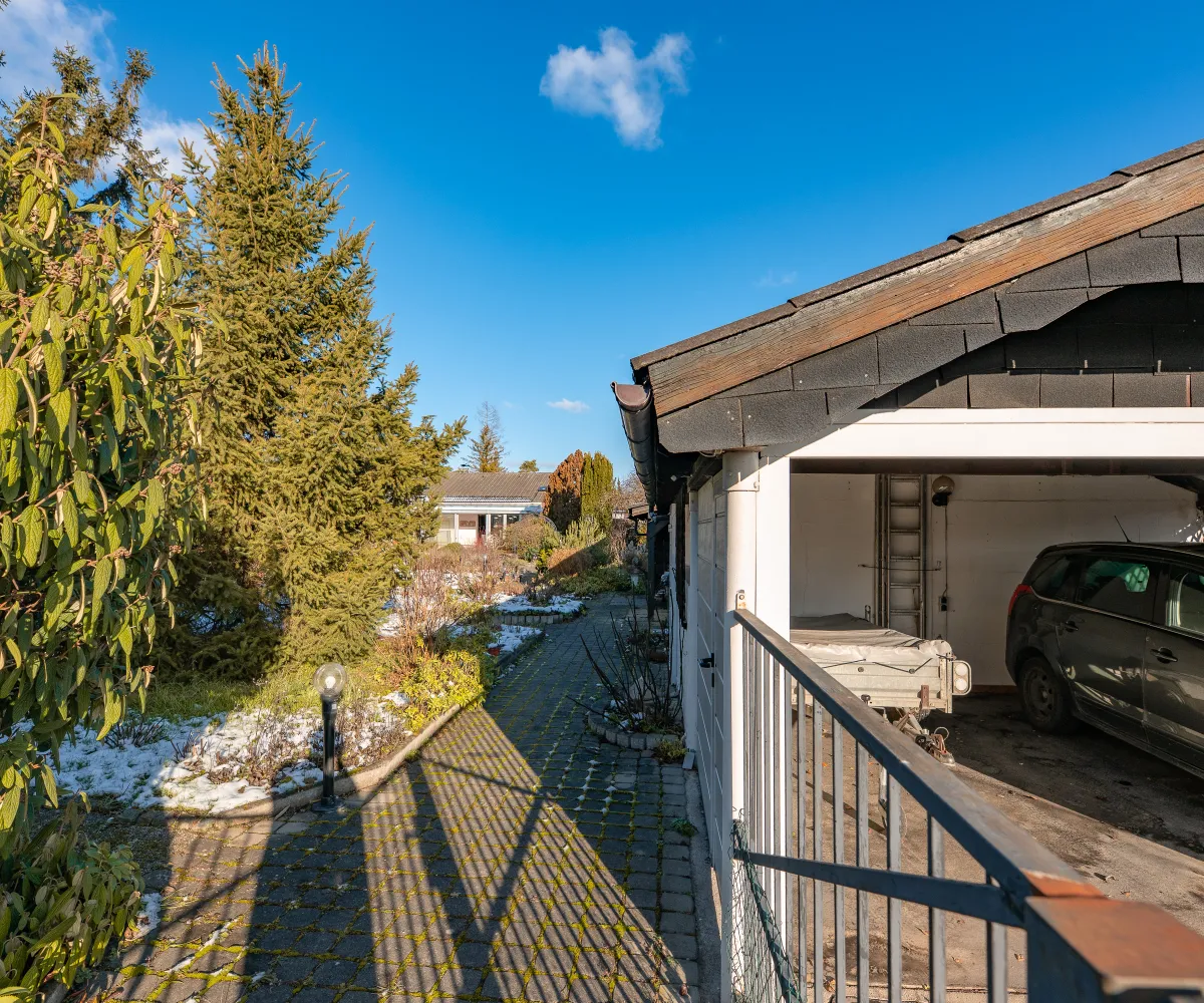 Die zweite Parzelle ist derzeit nur mit einer Doppelgarage bebaut, kann aber auch abgetrennt werden und mit einem weiteren Einfamilienhaus bebaut werden. Auch die Aufstockung des Gebäudes um ein Stockwerk ist möglich.