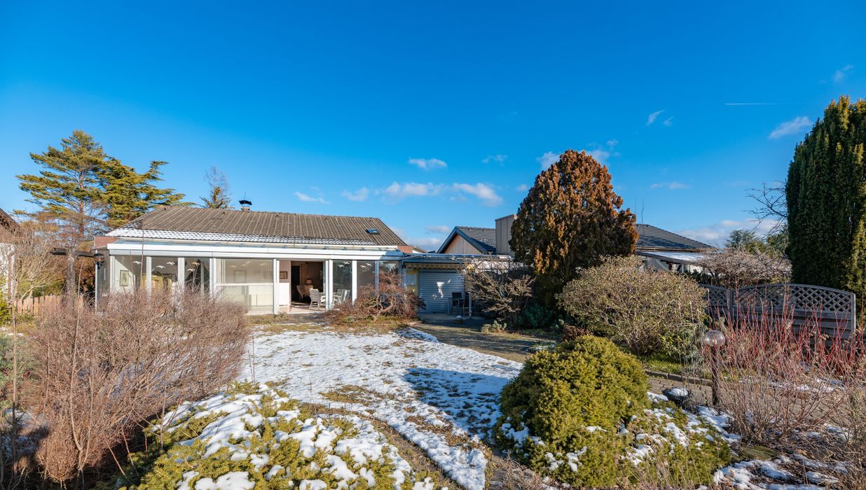 Dieses gepflegte und sehr helle Einfamilienhaus bietet Ihnen auf großzügigen 156 m² Fläche einen durchdachten Grundriss und einen schönen Wohnbereich mit drei Zimmern plus Wintergarten. Ein weiterer Raum ergänzt die Wohnfläche mit einem Saunabereich und einer zweiten Dusche. Da dieser Bereich auch vom Garten aus betreten werden kann, würde er sich auch als separate Wohneinheit für ältere Kinder oder als Gästebereich nützen lassen.