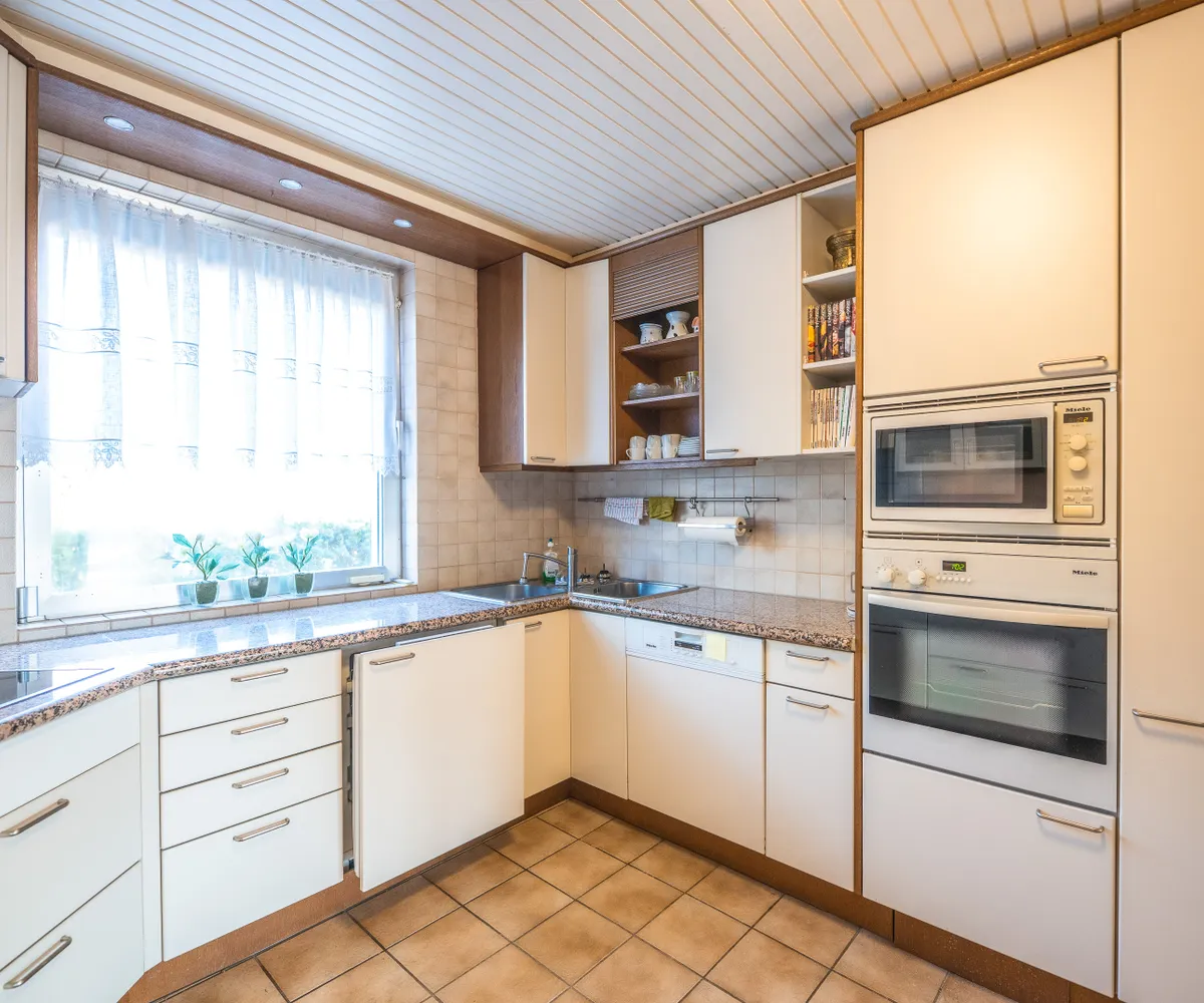 Das Haus überzeugt durch eine zeitgemäße Raumaufteilung und besticht mit dem riesigen Wohnzimmer und dem Wintergarten nach Süden, die Ihnen und Ihrer Familie viel Platz zum Entspannen und Wohlfühlen bieten. Die große Wohnküche mit offenem Konzept ist der Mittelpunkt des Hauses. Hier können Sie gesellige Abende mit Familie und Freunden verbringen. Zwei geräumige Schlafzimmer grenzen an das Wohnzimmer an.