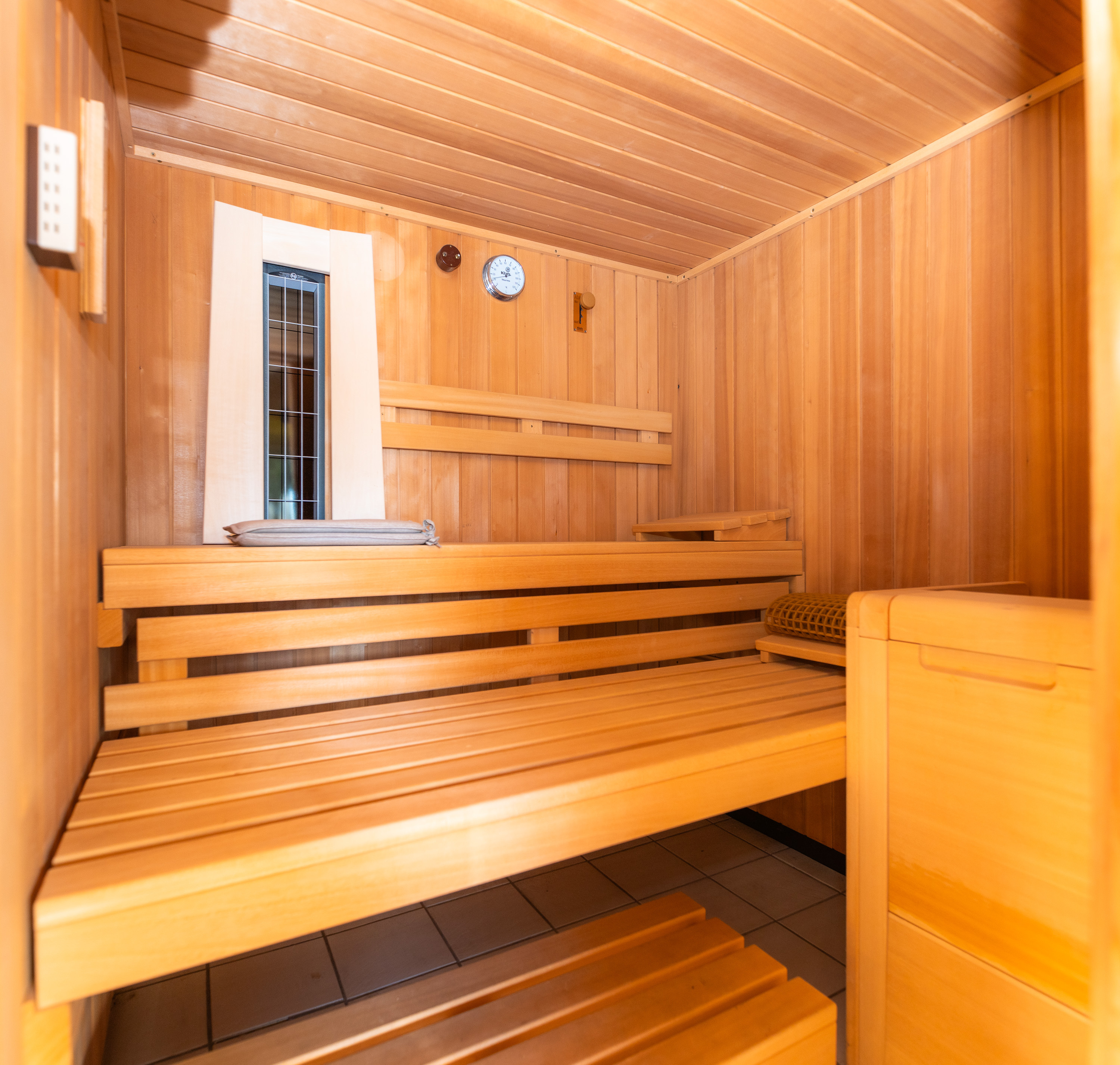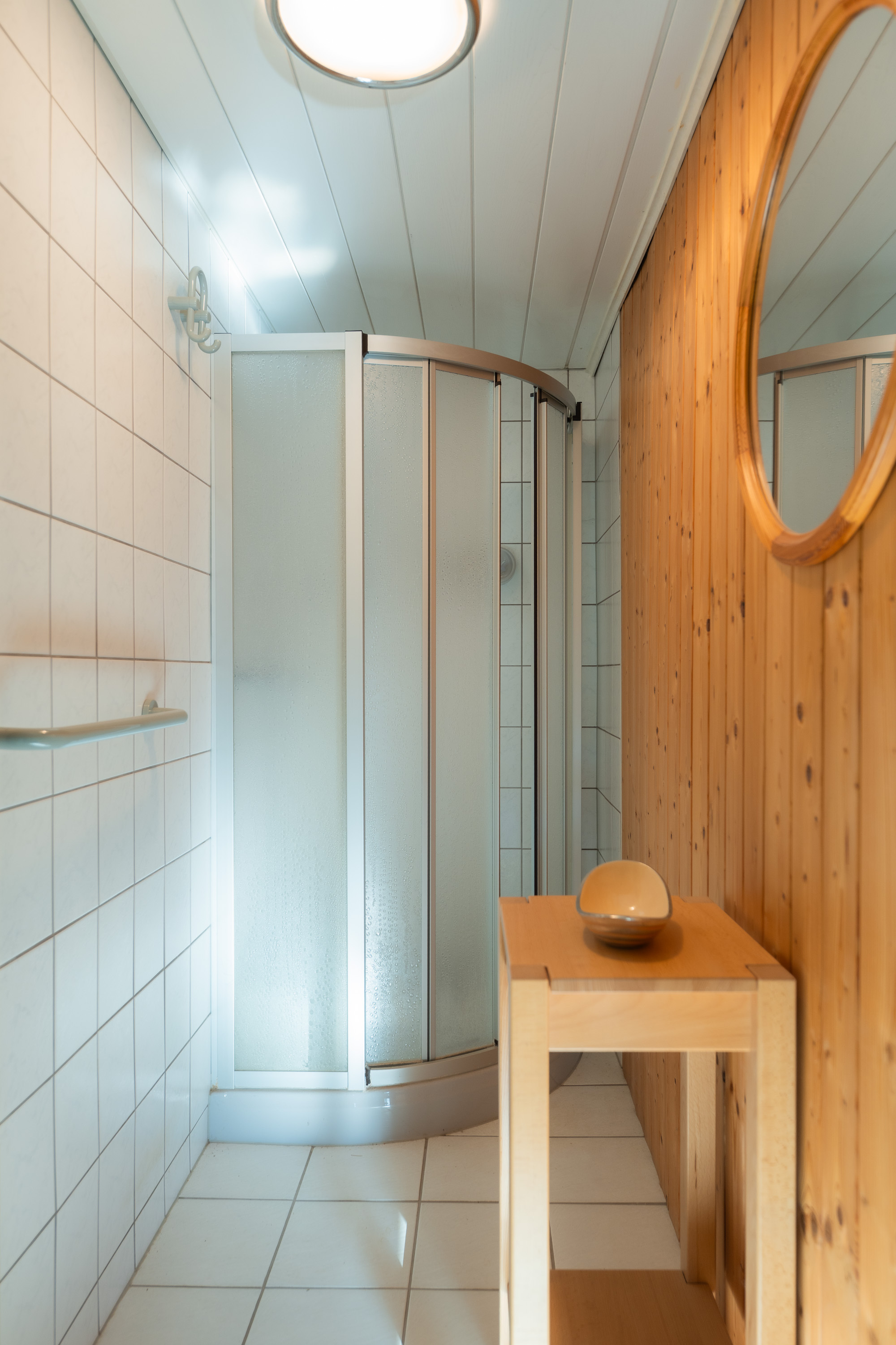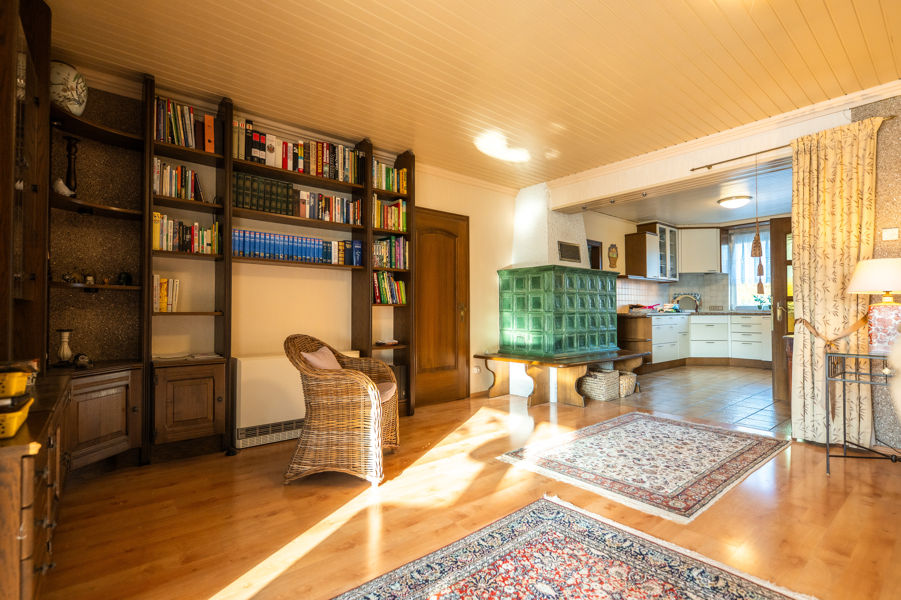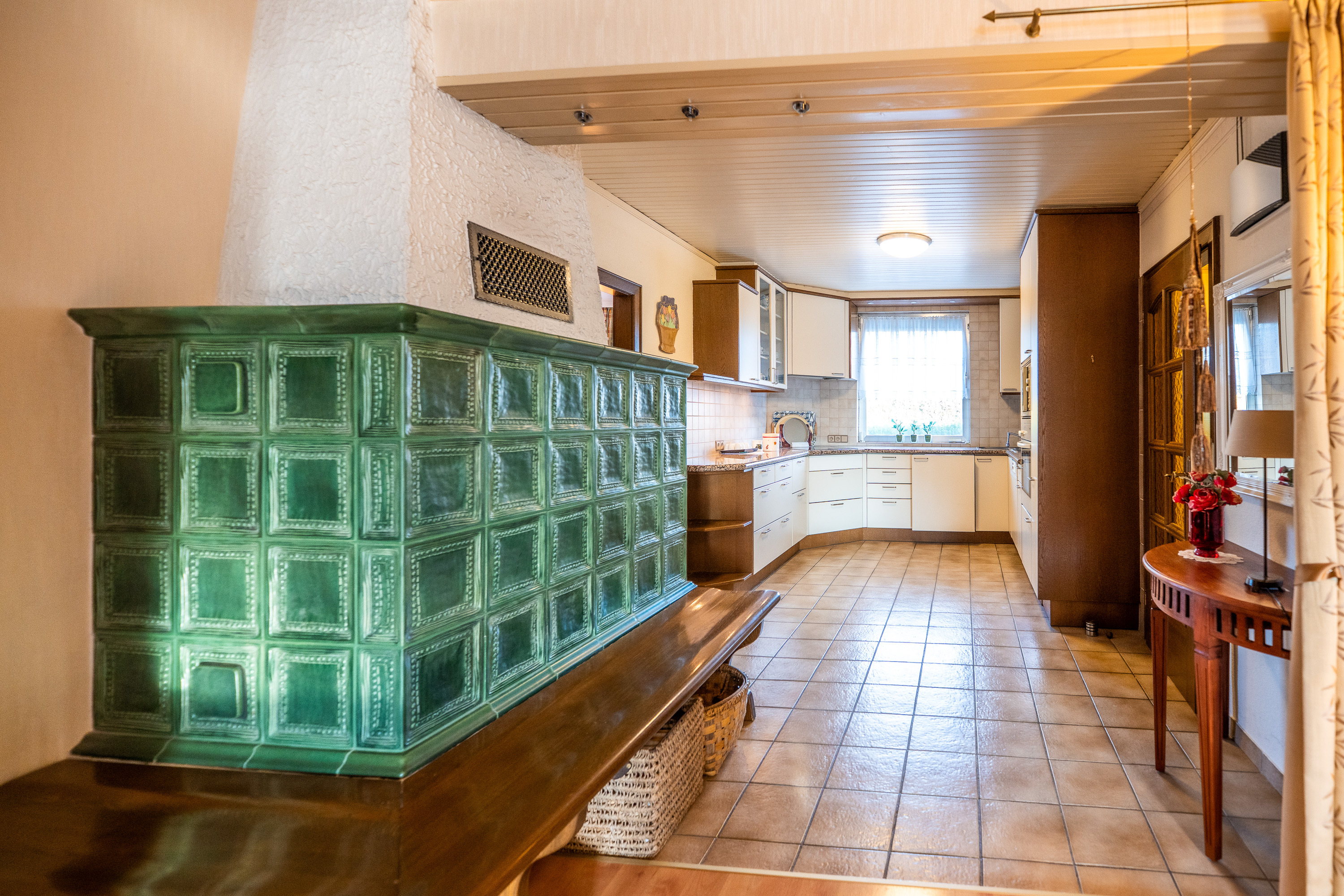 Geheizt wird mit Vaillant Elektroöfen oder alternativ mit dem Kachelofen.