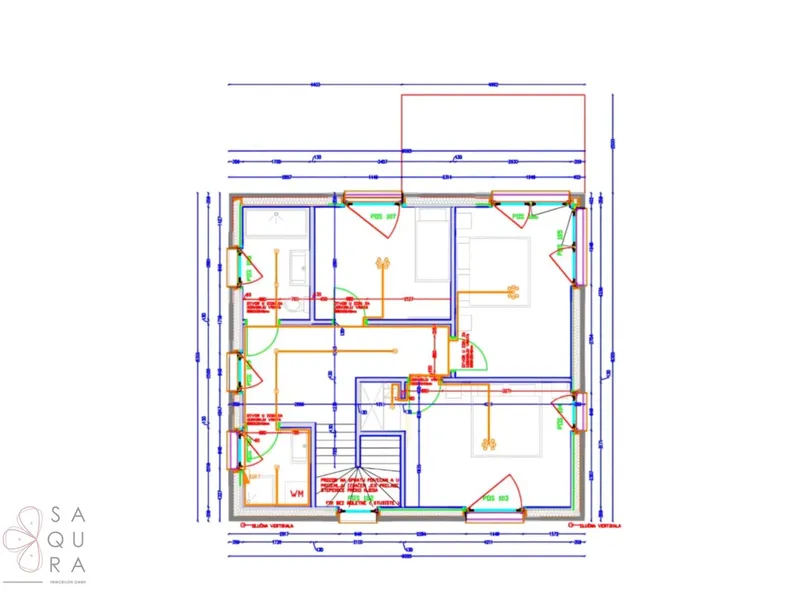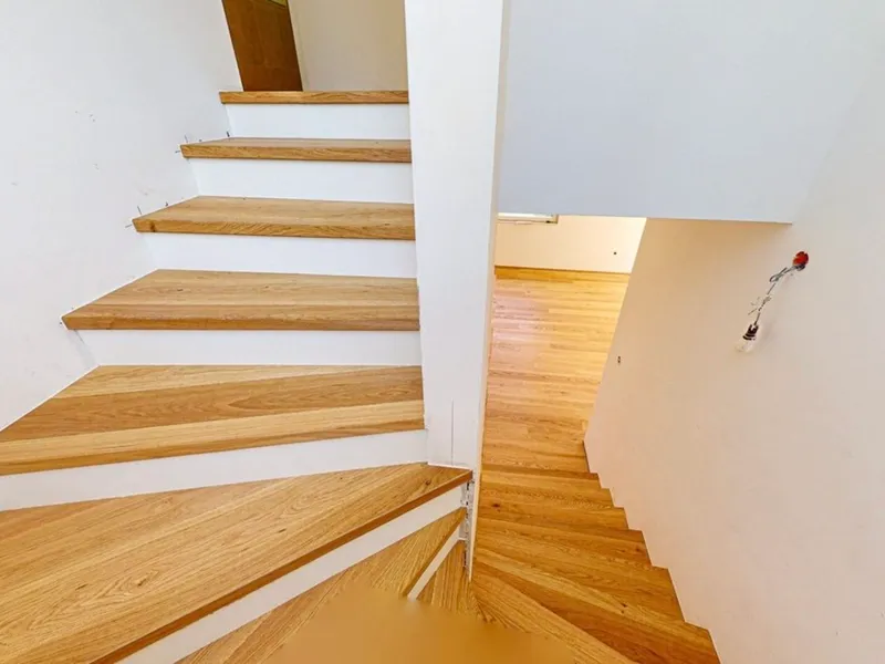Über einen separaten Eingang gelangt man in die 2. Wohnung im Obergeschoss. Auf ca. 88qm Wohnfläche bietet sie 2 Zimmer, eine große Wohnküche, Bad, WC und einen ca. 6,6 qm großen Balkon und gliedert sich: