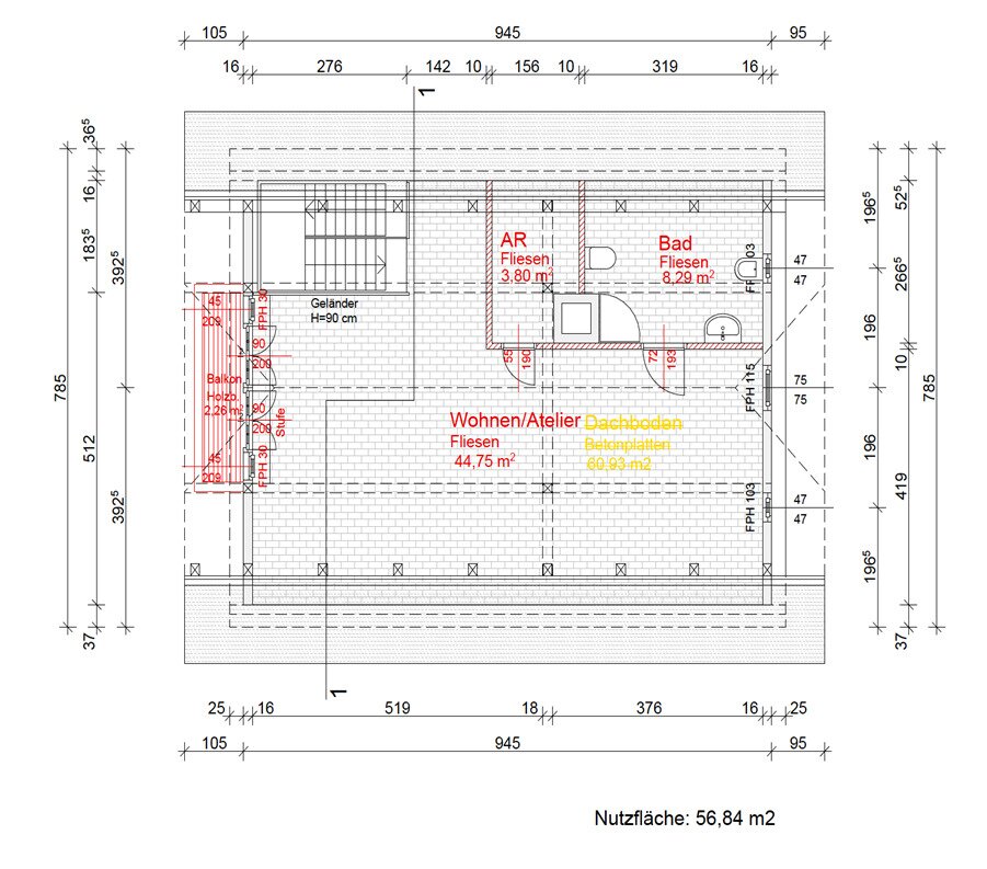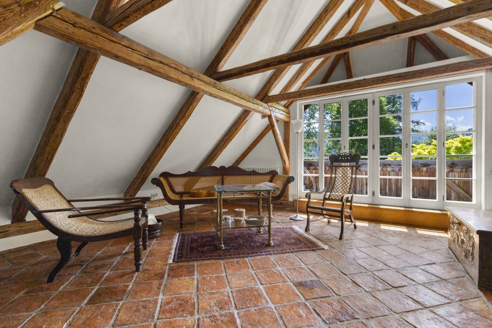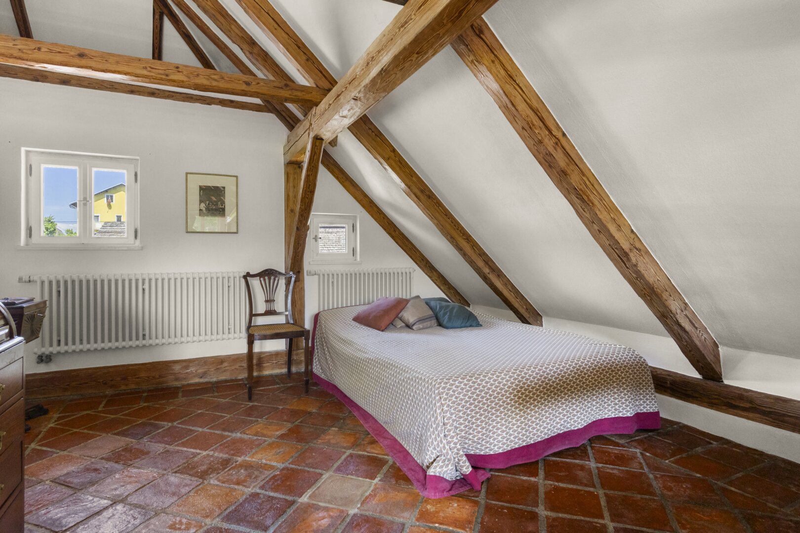 - Holzfenster mit Balken (restauriert), Jalousien über Funk im DG