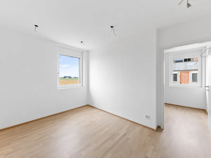 Die Ausstattung der Häuser lässt keine Wünsche offen. Die behagliche Fußbodenheizung mittels Luft-/Wasserwärmepumpe sorgt für Komfort und angenehme Raumtemperaturen. Eine effiziente Photovoltaikanlage ermöglicht grüne und kosteneffiziente Energieversorgung. Die dreifach verglasten Kunststoff- und Alufenster mit außenliegendem Sonnenschutz bieten optimalen Schutz vor Lärm und Sonneneinstrahlung. Die Innenräume beeindrucken durch exquisite Holzböden und Designerfliesen, die die Räume warm und einladend wirken lassen.