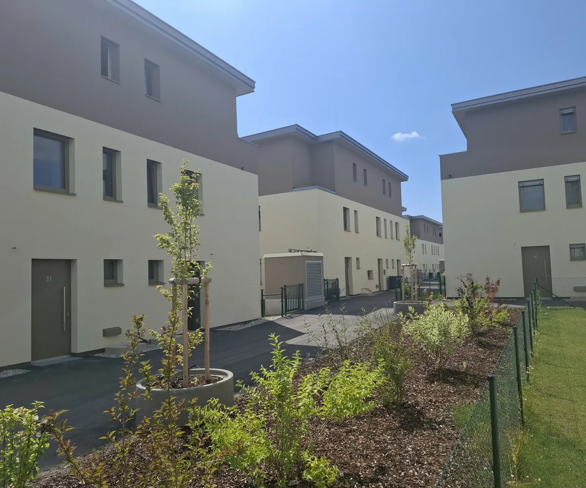 Die Ausstattung der Häuser lässt keine Wünsche offen. Die behagliche Fußbodenheizung mittels Luft-/Wasserwärmepumpe sorgt für Komfort und angenehme Raumtemperaturen. Eine effiziente Photovoltaikanlage ermöglicht grüne und kosteneffiziente Energieversorgung. Die dreifach verglasten Kunststoff- und Alufenster mit außenliegendem Sonnenschutz bieten optimalen Schutz vor Lärm und Sonneneinstrahlung. Die Innenräume beeindrucken durch exquisite Holzböden und Designerfliesen, die die Räume warm und einladend wirken lassen.