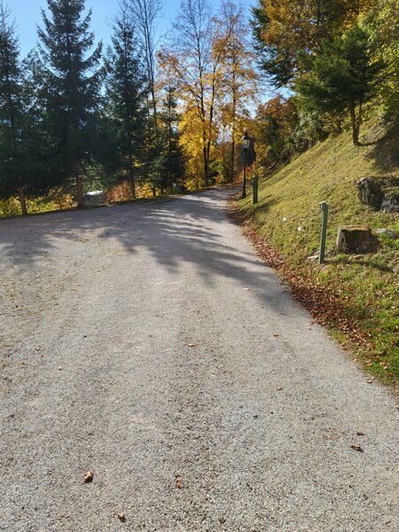Ein Kalvarienberg mit historischen Statuen markiert die Zufahrt und unterstreicht die einzigartige historische Atmosphäre des Anwesens.