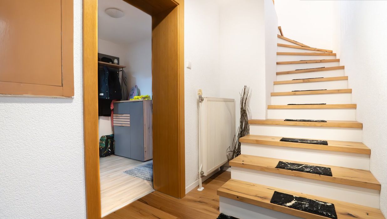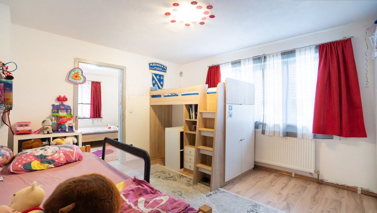 Im Obergeschoss befinden sich drei weitere Schlafzimmer, ein zweites Bad mit WC und ein praktischer Abstellraum. Das Dachgeschoss wurde bereits ausgebaut und bietet mit zwei zusätzlichen Räumen sowie zwei kleinen Abstellräumen weiteres Potenzial – sei es für Gäste, Hobbies oder als Homeoffice.