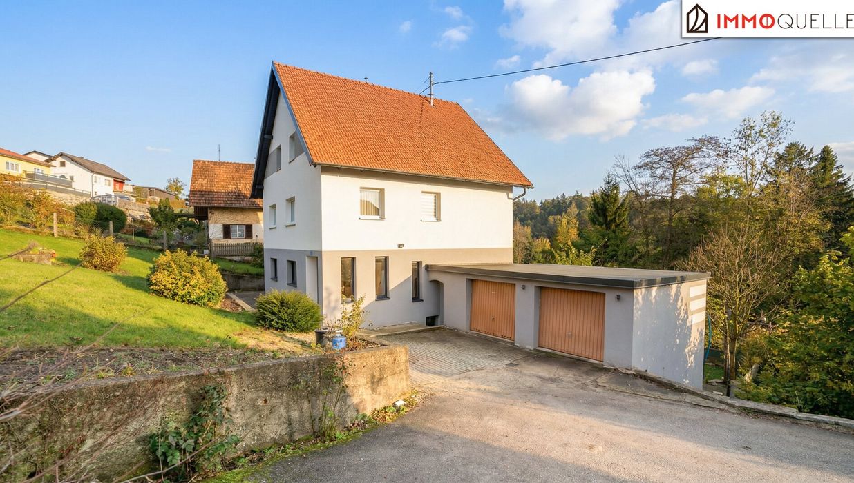Ergänzt wird das Wohnangebot durch einen ca. 40 m² großen Teilkeller sowie einen Lager- und Werkraum unter der Garage mit weiteren rund 30 m² Fläche. Eine Garage für zwei Fahrzeuge und zusätzliche Stellplätze auf dem Grundstück sorgen für komfortables Parken.