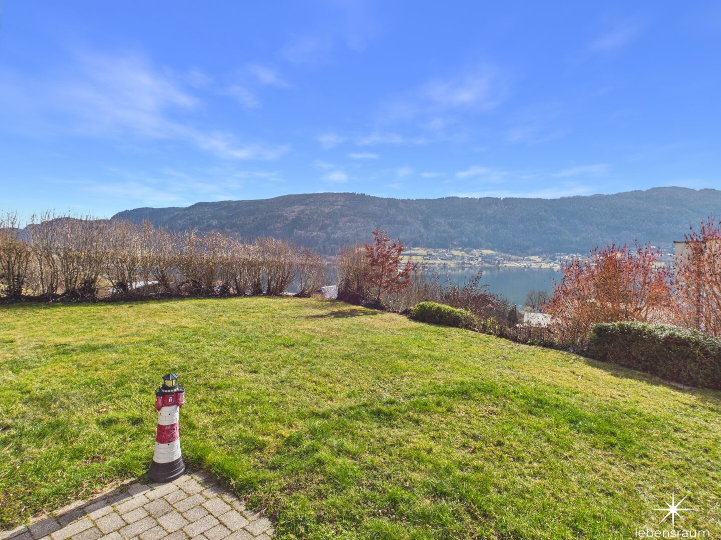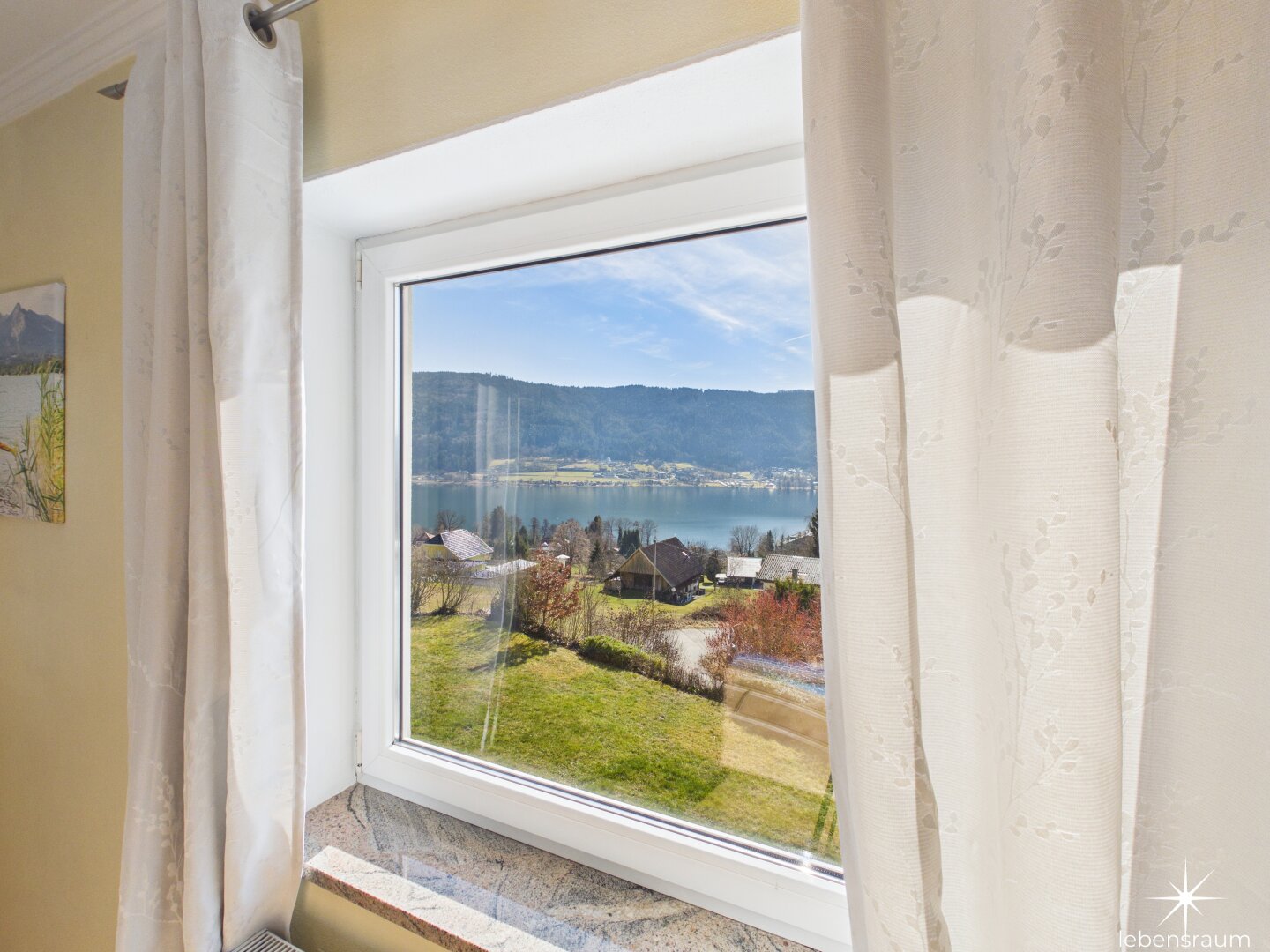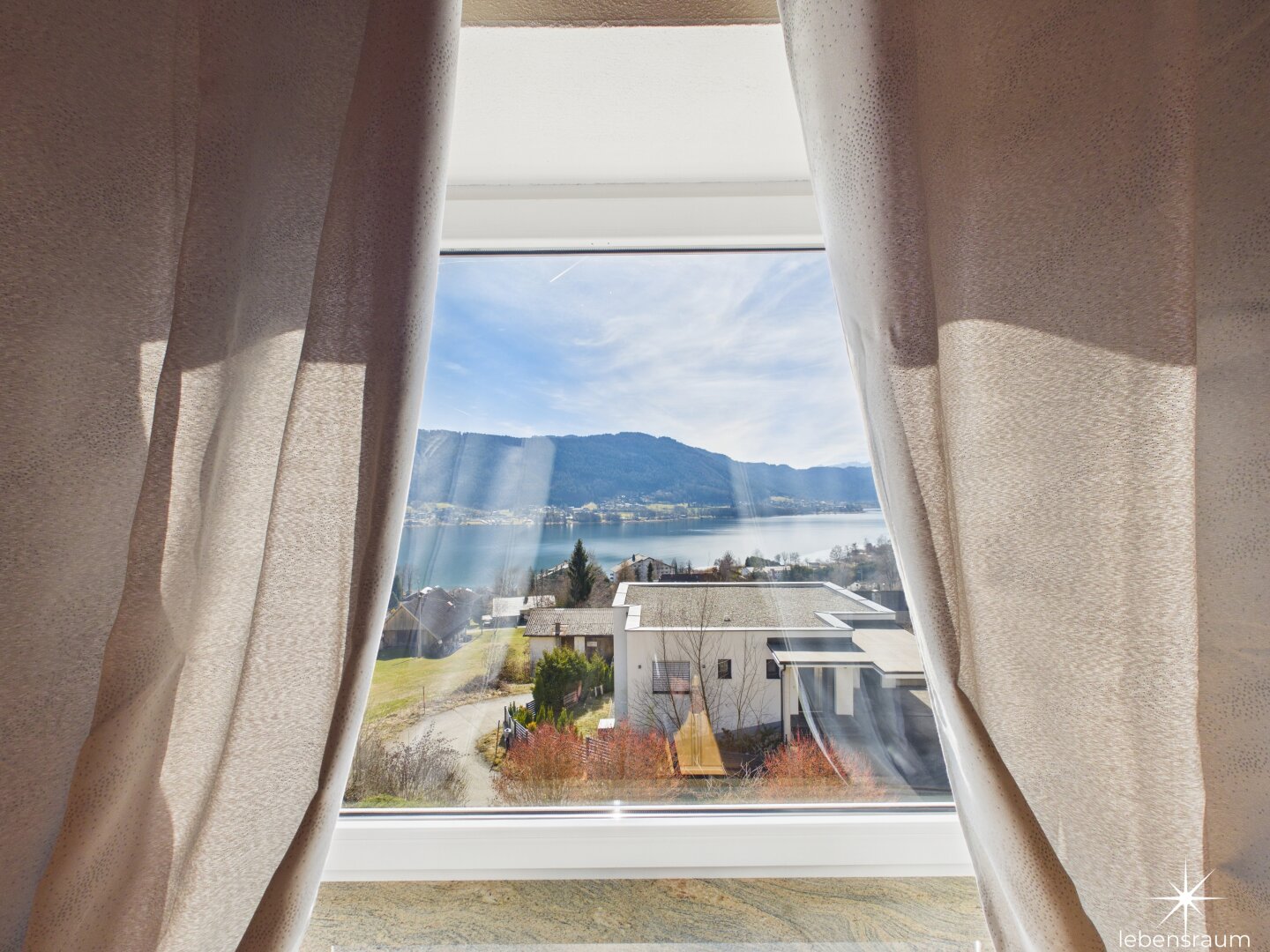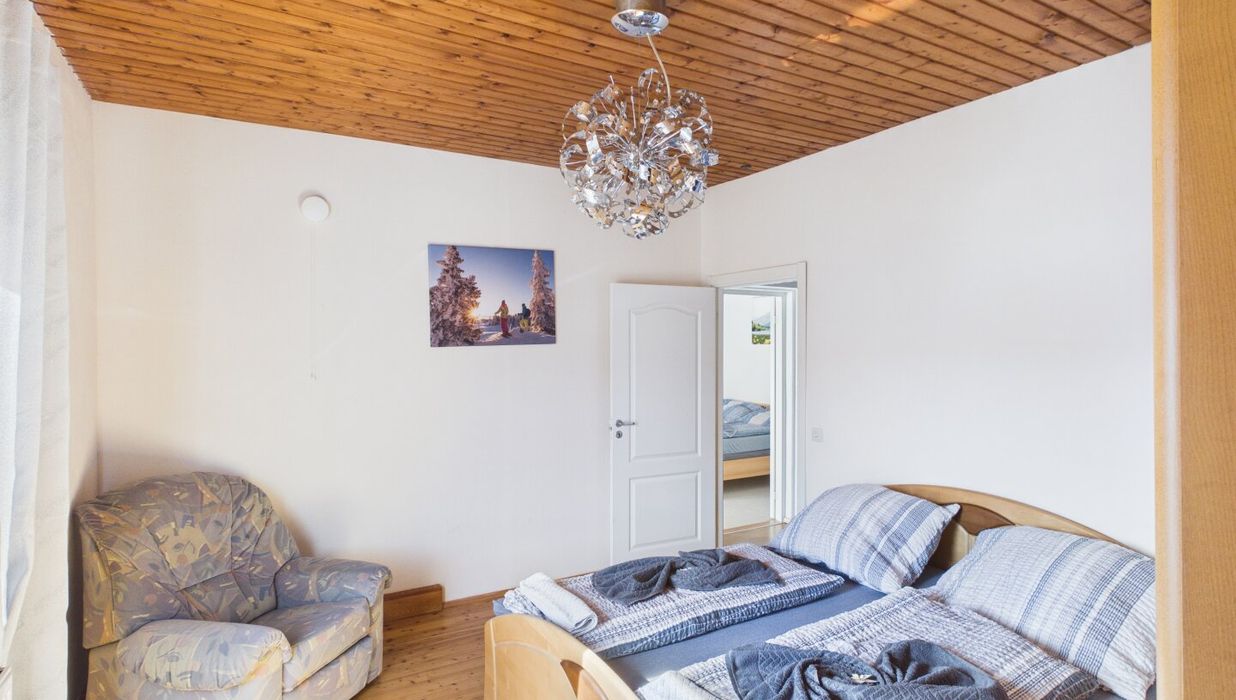 Attraktive, abgeschlossene Hauptwohnung mit sehr großzügigem Wohnzimmer mit einem gemauerten Ofen und teilintegrierter Küche sowie Zugang auf die Terrasse. Der direkte Blick auf den Ossiachersee und die umliegende Bergwelt des Dreiländerecks Österreich, Italien und Slowenien. 3 Schlafzimmer, der Sanitärbereich und ein attraktiver Wintergarten mit schönem Seeblick sind ebenfalls Bestandteil des Geschoßes. Der südwestliche Teil des Gartens inklusive dem Swimmingpool mit Entsalzungsanlage ist über die Terrasse direkt begehbar.