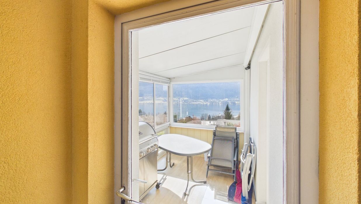 Genießen Sie die Sonne auf zwei Balkonen, einer Loggia und zwei großzügigen Terrassen, die alle mit Südausrichtung überzeugen und einen traumhaften Ausblick bieten. Ob Seeblick, Bergblick, Fernblick oder Grünblick – hier erleben Sie jeden Tag ein kleines Naturparadies direkt vor Ihrer Haustür.