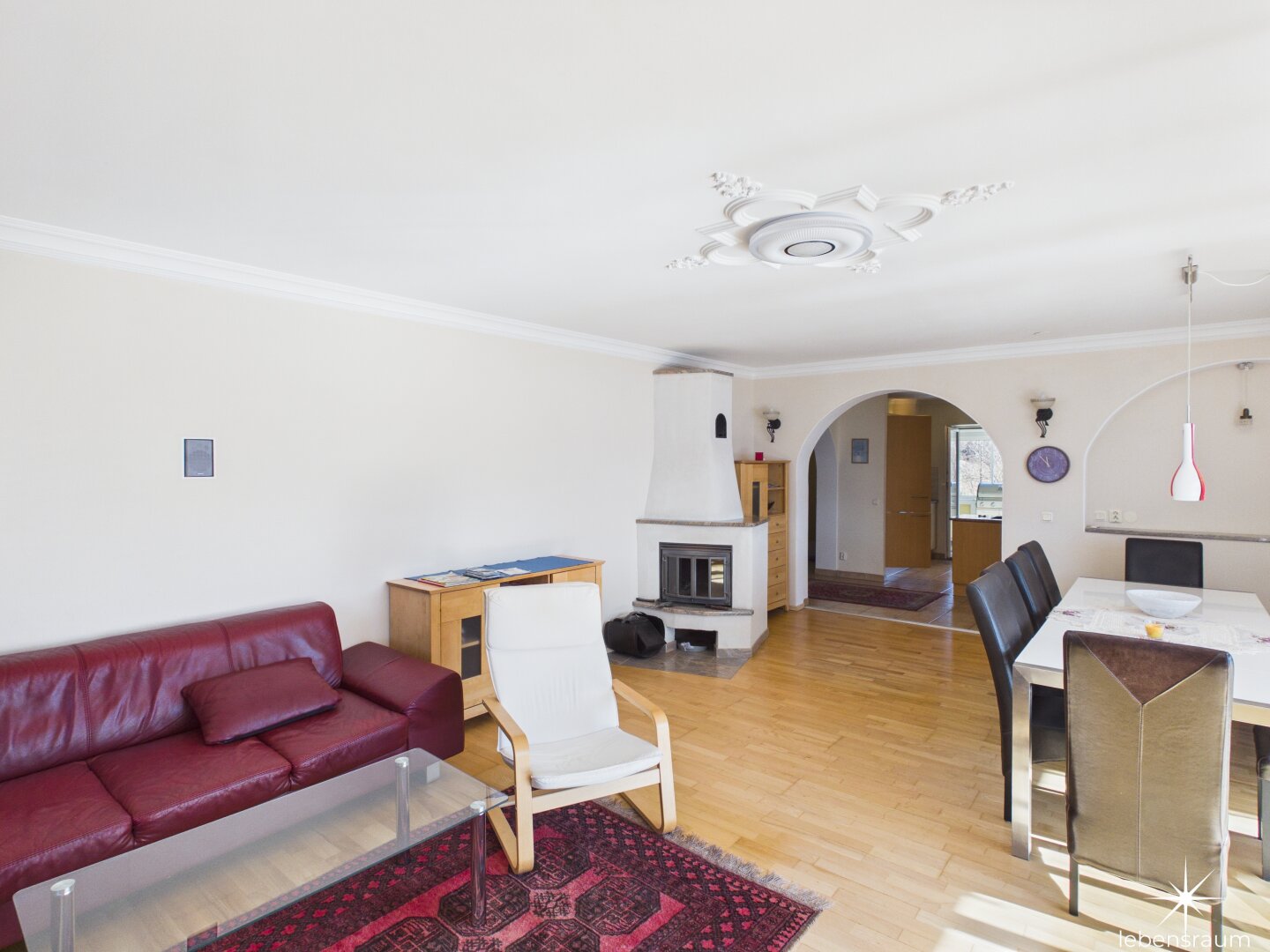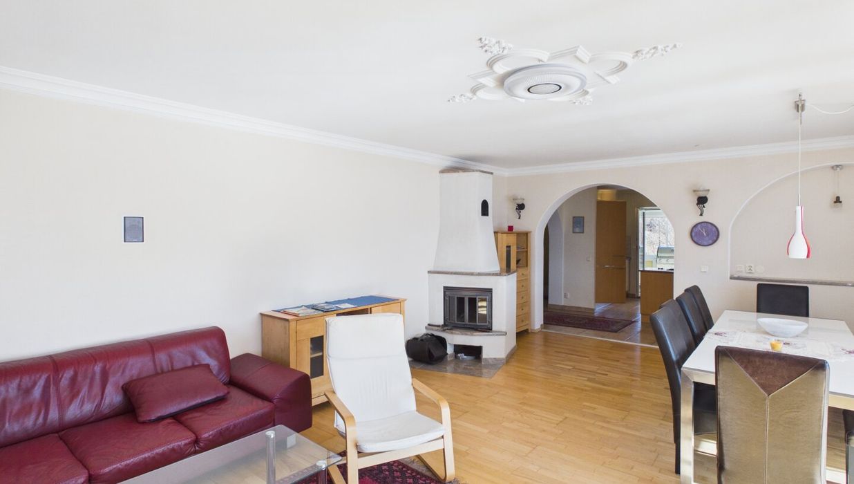 Das Haus wurde aufwändig modernisiert und besticht durch hochwertige Materialien wie Fliesen und Parkettböden, die für ein behagliches Wohnambiente sorgen. Die erst 2024 neu eingebaute zentrale Pellets-Heizungsanlage garantiert wohlige Wärme an kalten Tagen, für die Übergangszeit ist auch ein gemauerter Ofen vorhanden, während die großen Fensterfronten viel Tageslicht hereinlassen und den Blick auf die umliegende Natur und den atemberaubenden Seeblick freigeben.