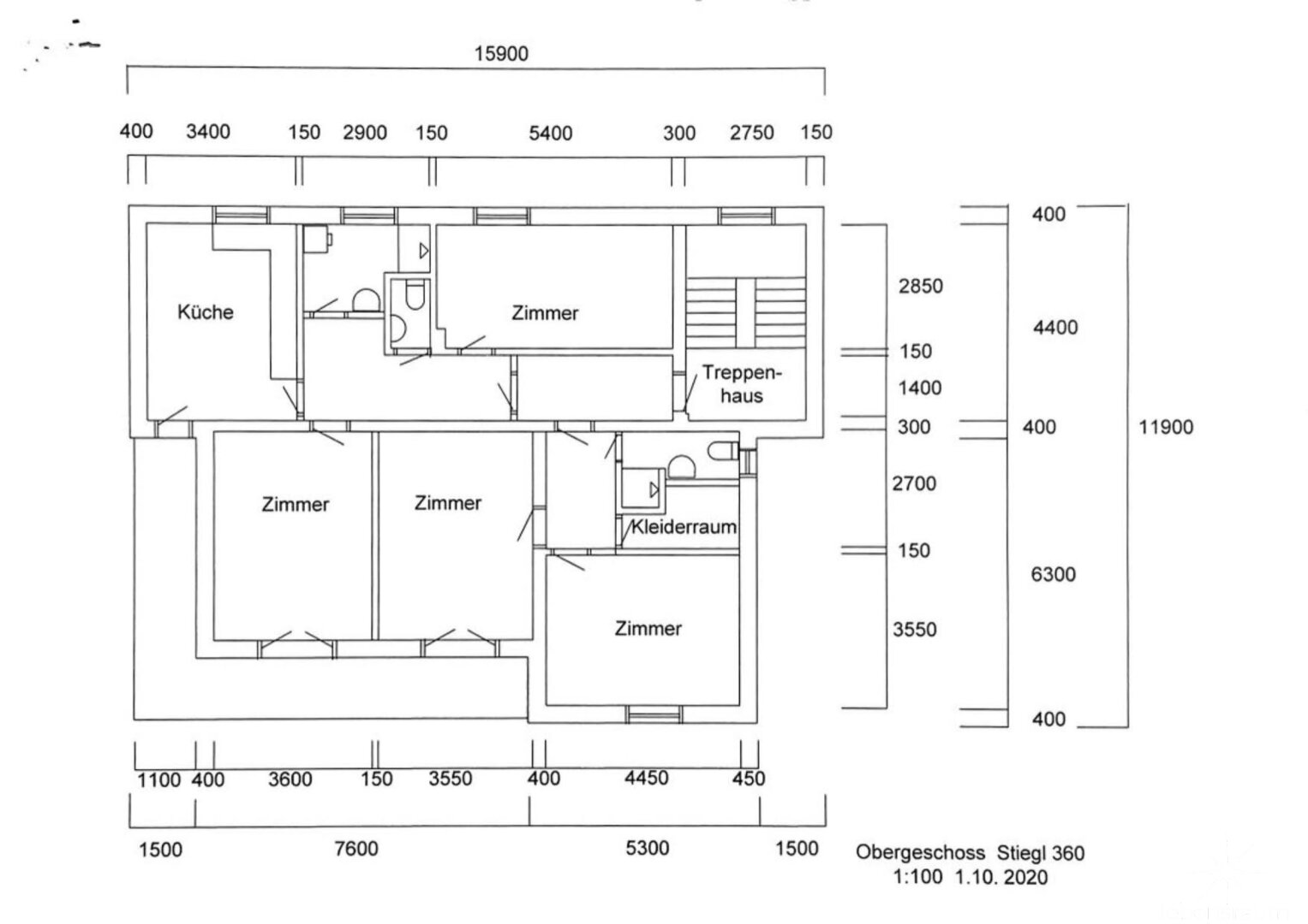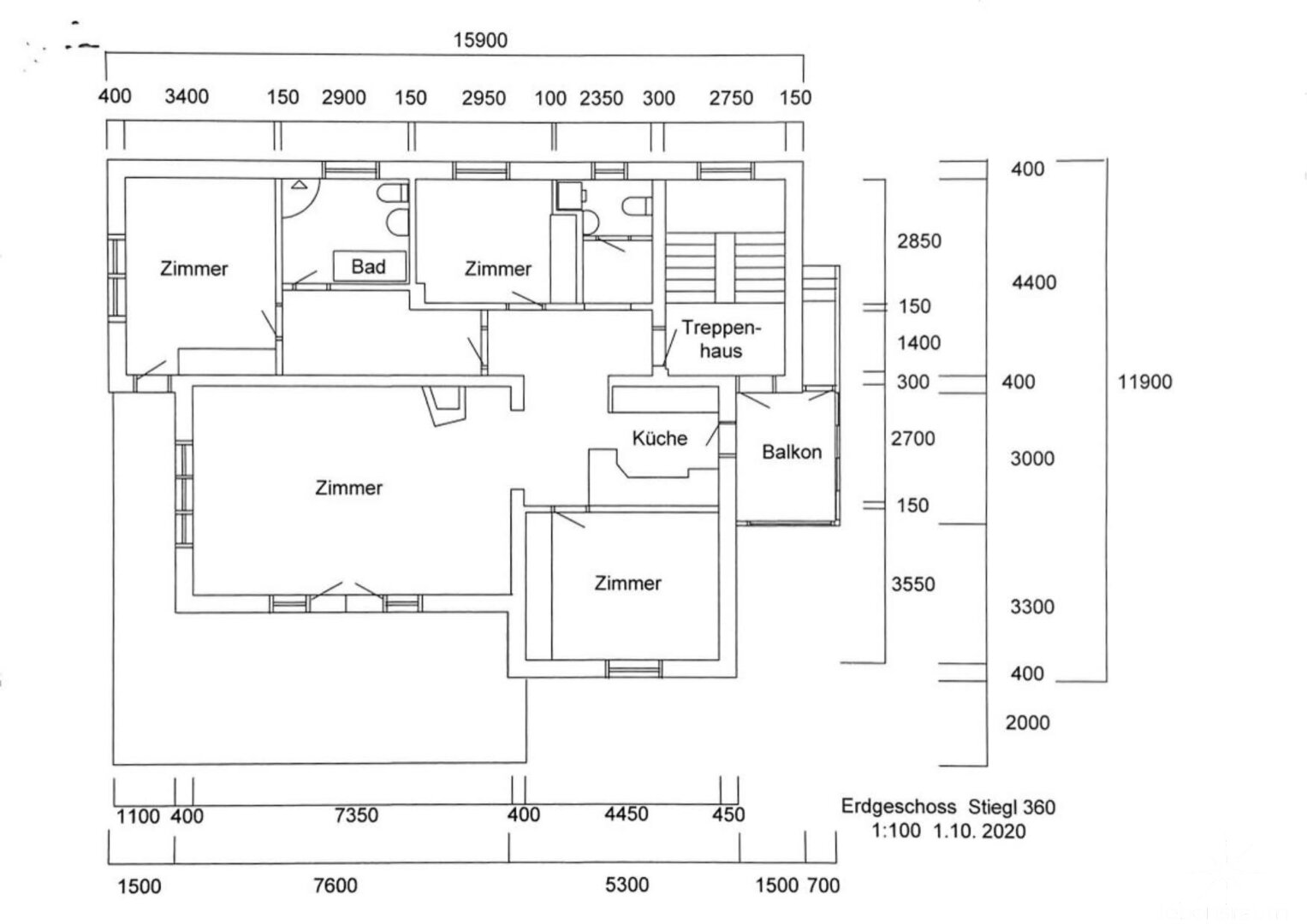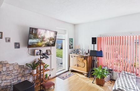 Ebenfalls ein abgeschlossener Bereich, bestehend aus 4 Zimmern, Wohnküche, Sanitärbereich und Nebenräumen. Über 3 dieser Räume haben Sie direkten Zugang auf den großzügigen Balkon in Südwestlage.