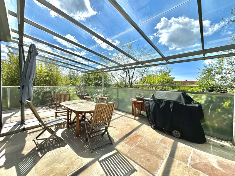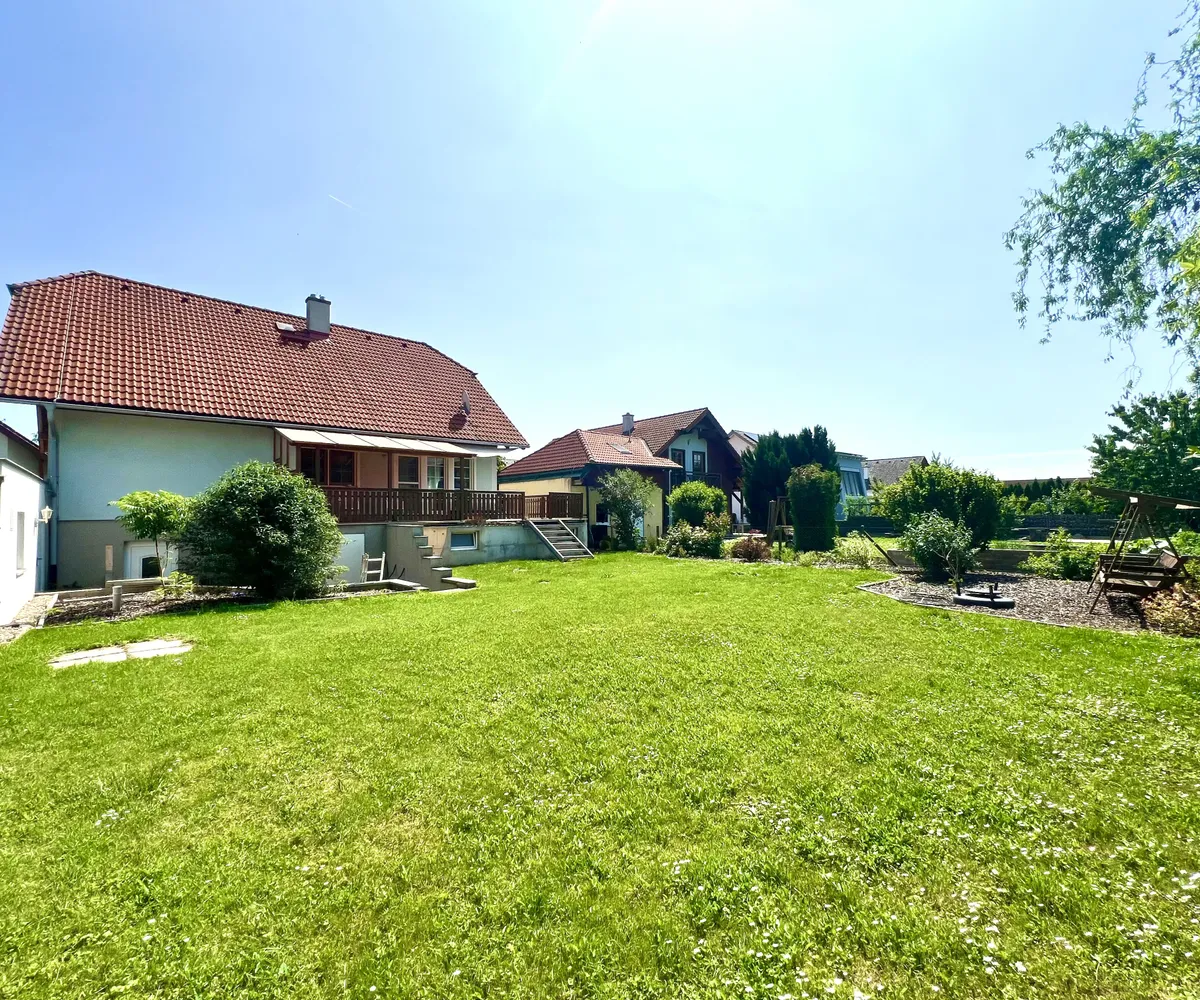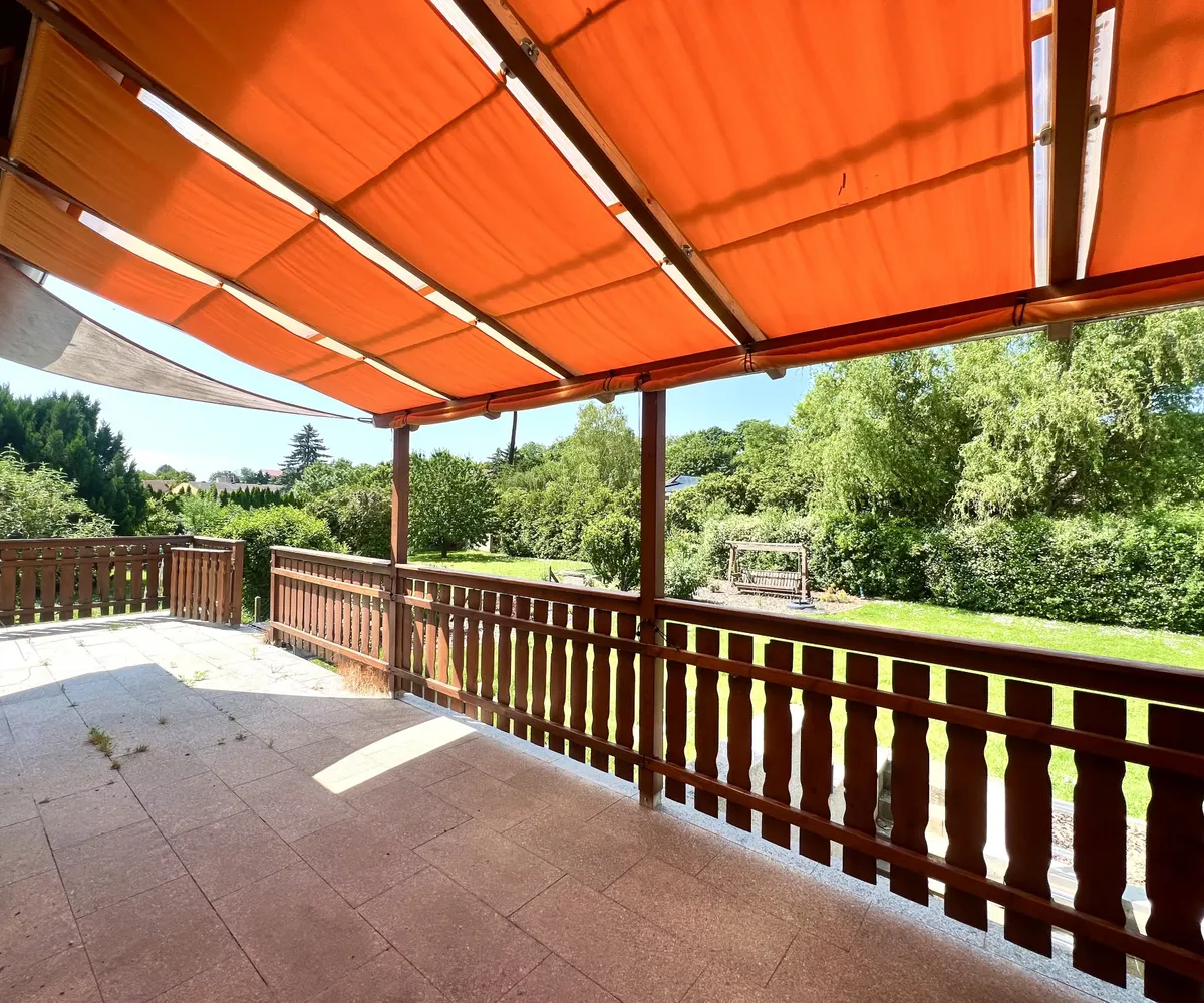 Wohlfühlhaus in absoluter Ruhelage mit gepflegtem Garten, großzügiger Terrasse , Garage für drei Autos sowie zusätzlichem Carport-Stellplatz .