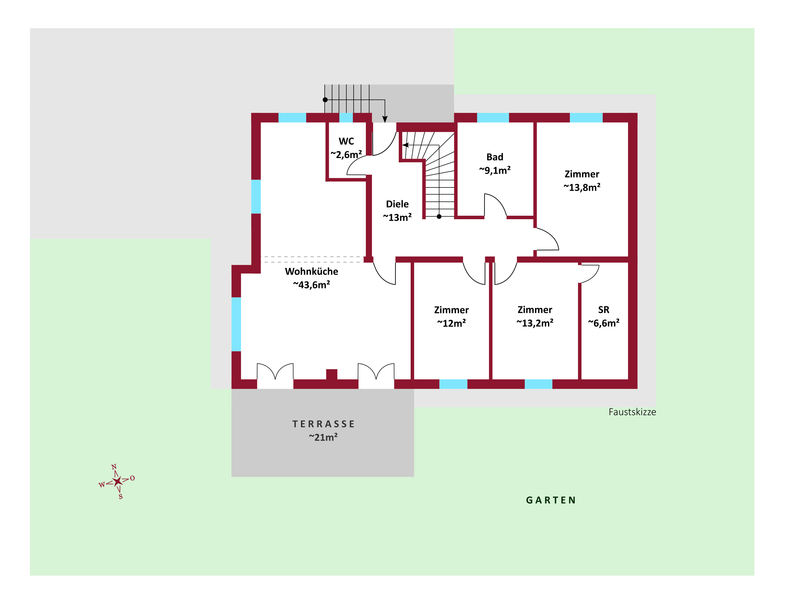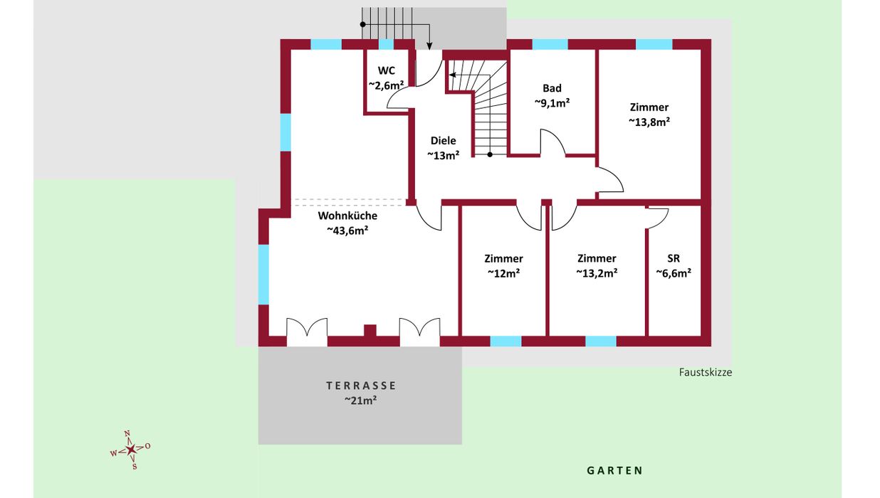 Die vorteilhafte Raumaufteilung gestaltet sich wie folgt: