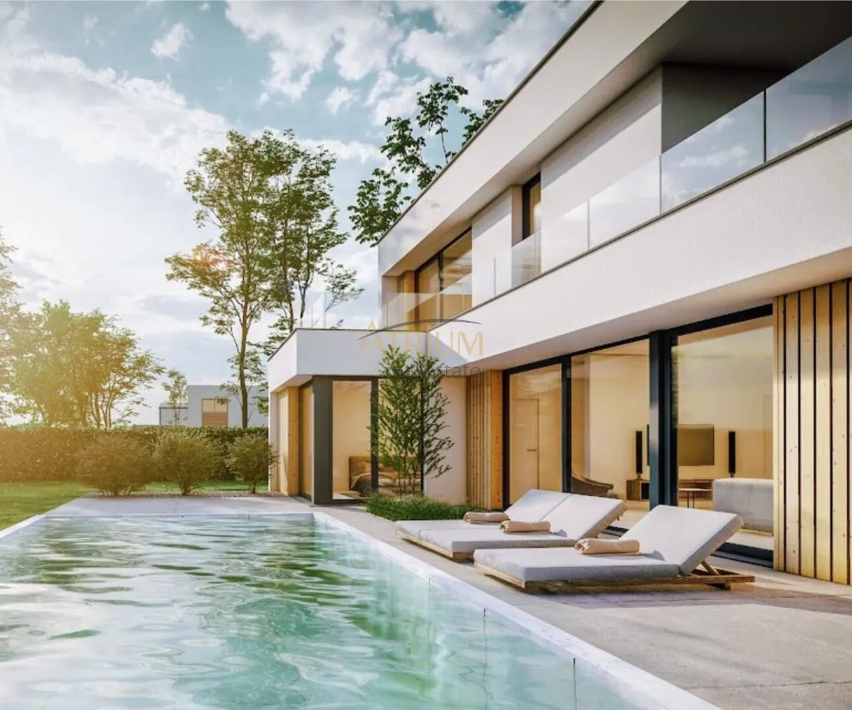 Das Einfamilienhaus begeistert vor allem aufgrund eines gut durchdachten Raumkonzepts, großzügigen Glasfronten und moderner Niedrigenergiebauweise in Holz - Fertigteilkonstruktion. Zwei Dachterrassen sowie ein beheizbarer Swimmingpool im Garten sorgen für zahlreiche Sonnenstunden und ein exklusives Wohn- und Freizeitambiente mit Ihrer Familie und Freunden. Sollten Sie noch mehr Platz zum Entfalten benötigen, ist gegen einen Aufpreis von 50.000€ eine Nutzfläche von gesamt 126m² statt 106m² möglich.