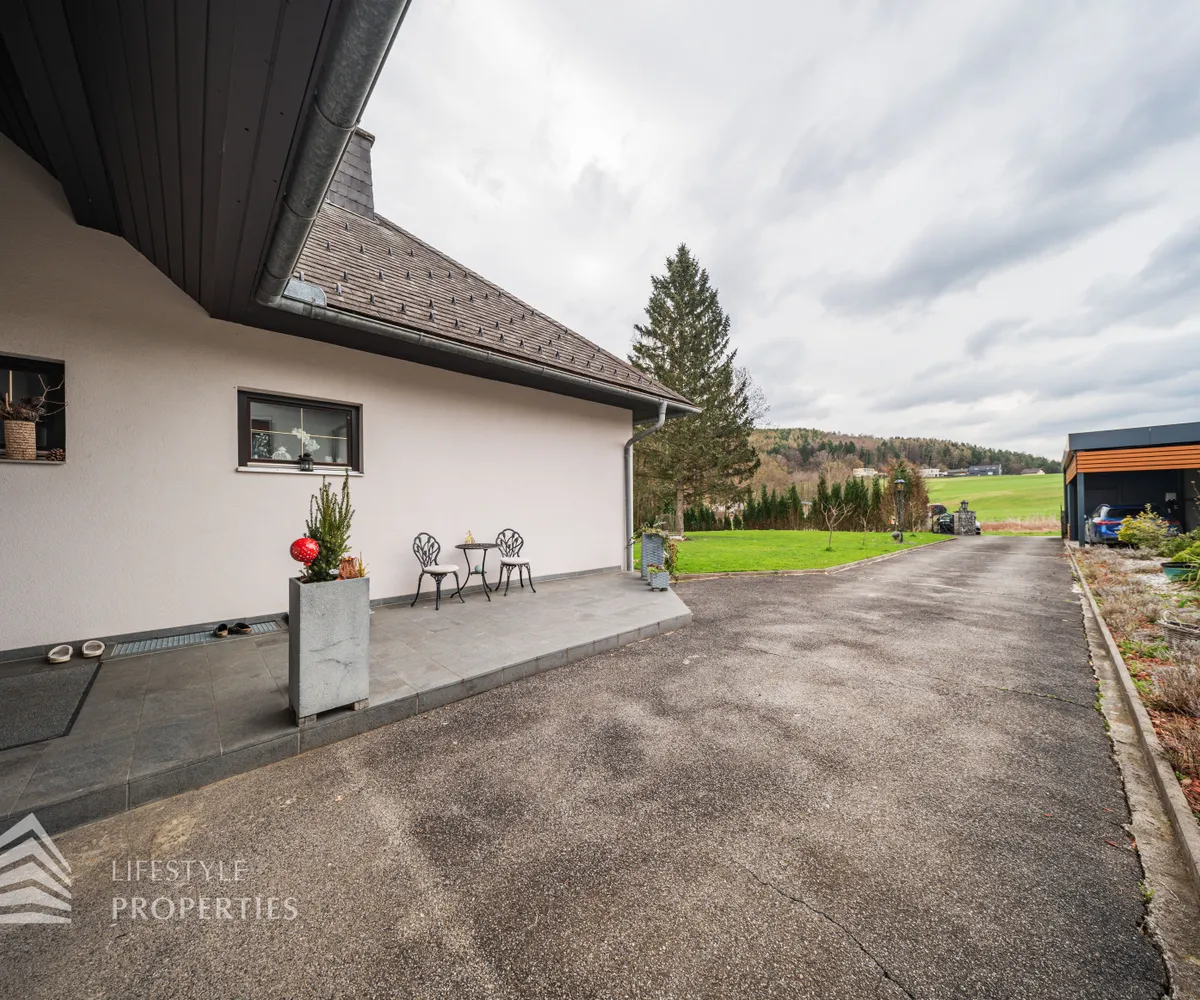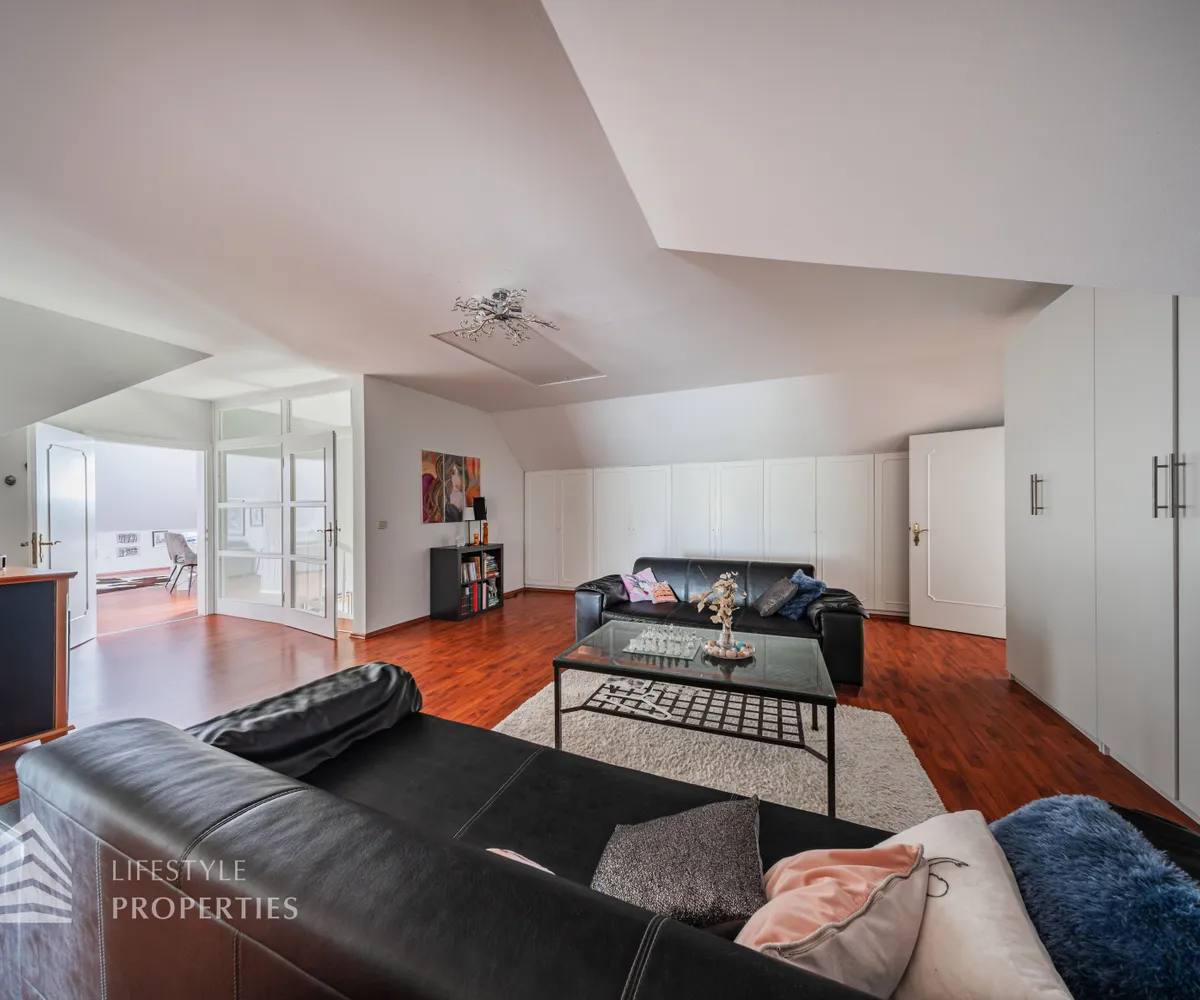 Die Villa verfügt über eine Garage sowie einen Carport und bietet damit ausreichend Platz für mehrere Fahrzeuge. Optional besteht die Möglichkeit, das bestehende Inventar sowie die stilvolle Möblierung gegen eine Ablöse in Höhe von 50.000 Euro zu übernehmen. Zusätzlich kann das angrenzende Grundstück erworben werden, wodurch sich ein großzügiger Garten mit altem Baumbestand ergibt – eine wahre Oase der Ruhe und Privatsphäre.
