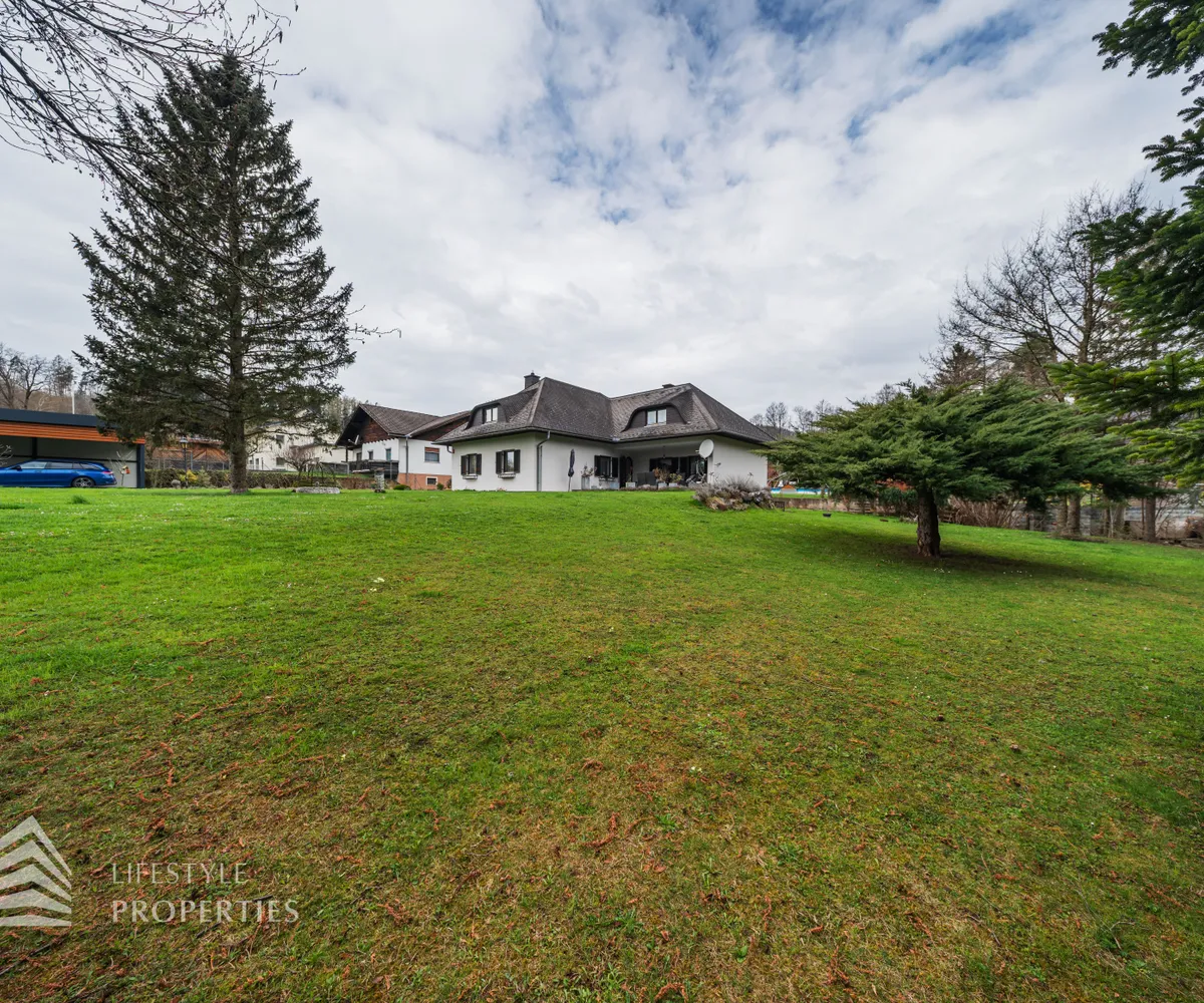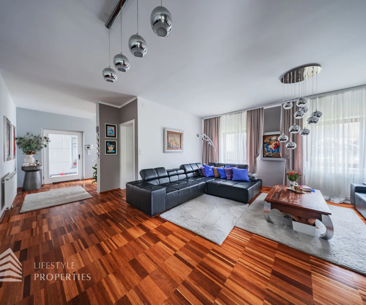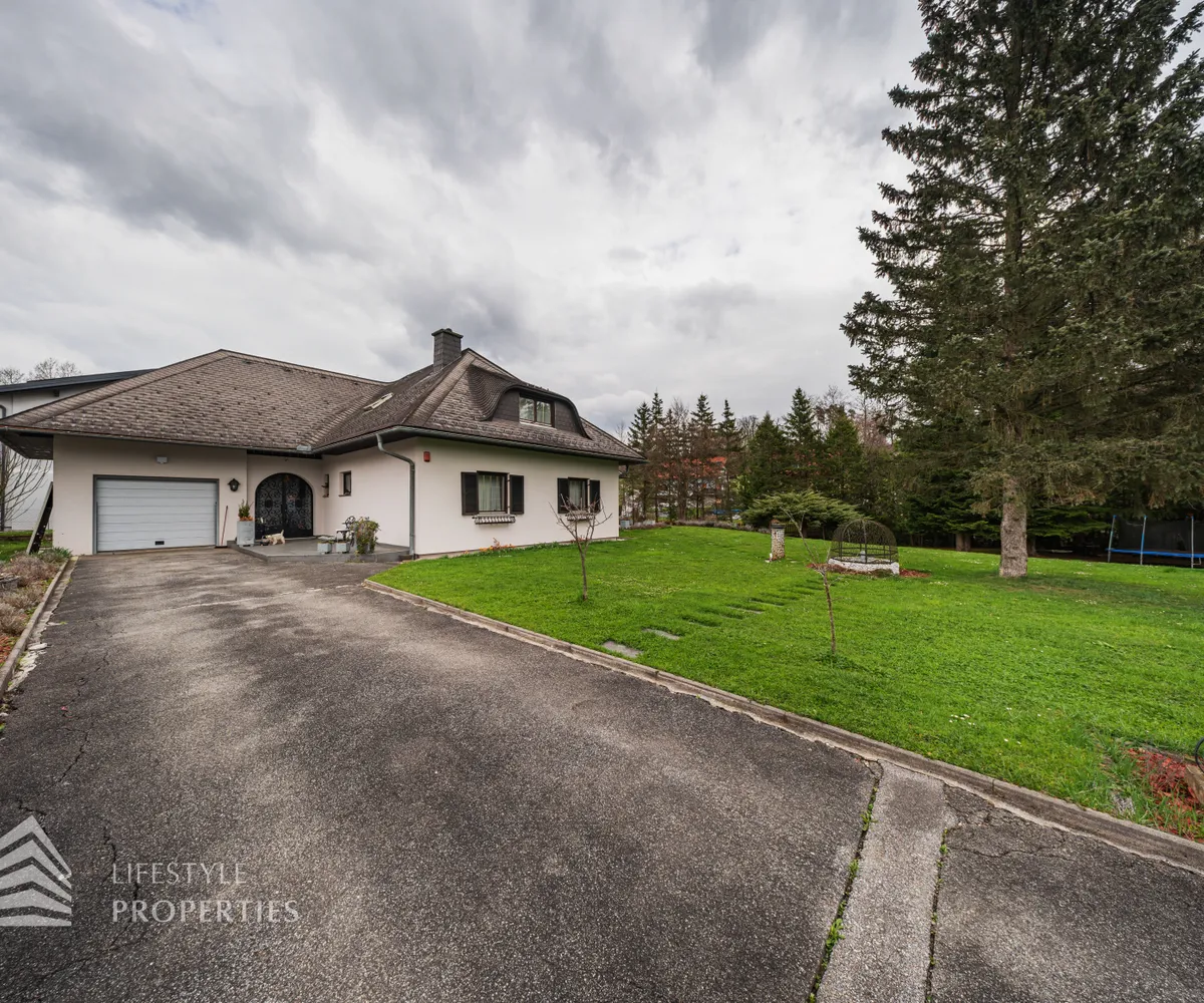 Zum Verkauf gelangt eine wunderschöne Luxus-Landhaus-Villa in ruhiger Lage in Thal bei Graz. Das Haus wurde im Jahr 1976 auf einem großflächigen ca. 1.175 m² großen Grundstück erbaut und im Jahr 2022 mit viel Sorgfalt und hochwertigen Materialien umfassend renoviert. Mit einer großzügigen Gesamtnutzfläche von etwa 450 m² bietet diese Villa ausreichend Platz für eine große Familie sowie komfortables Wohnen mit Stil und Qualität. Die Ausstattung des Hauses lässt keine Wünsche offen. Die Böden in den Wohnräumen sind mit edlem Parkett ausgelegt, während die Nassräume und der Keller mit geschmackvollen Fliesen versehen sind. Beheizt wird das Objekt mittels Ölheizung. Ein weiteres Highlight ist der eigene Wasserbrunnen, der Unabhängigkeit und zusätzliche Versorgungssicherheit bietet.
