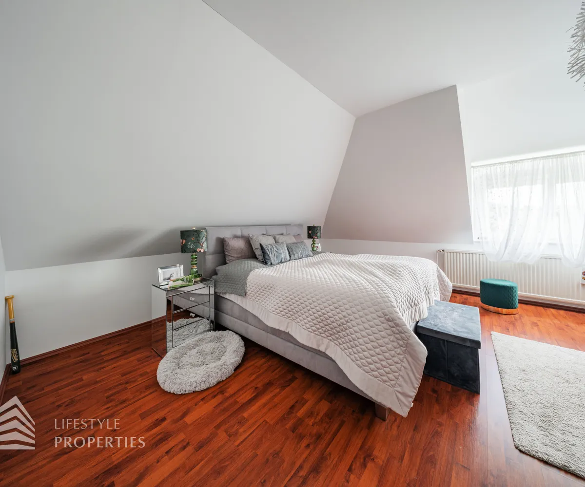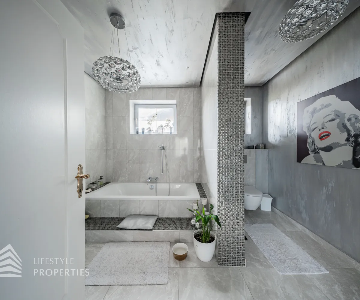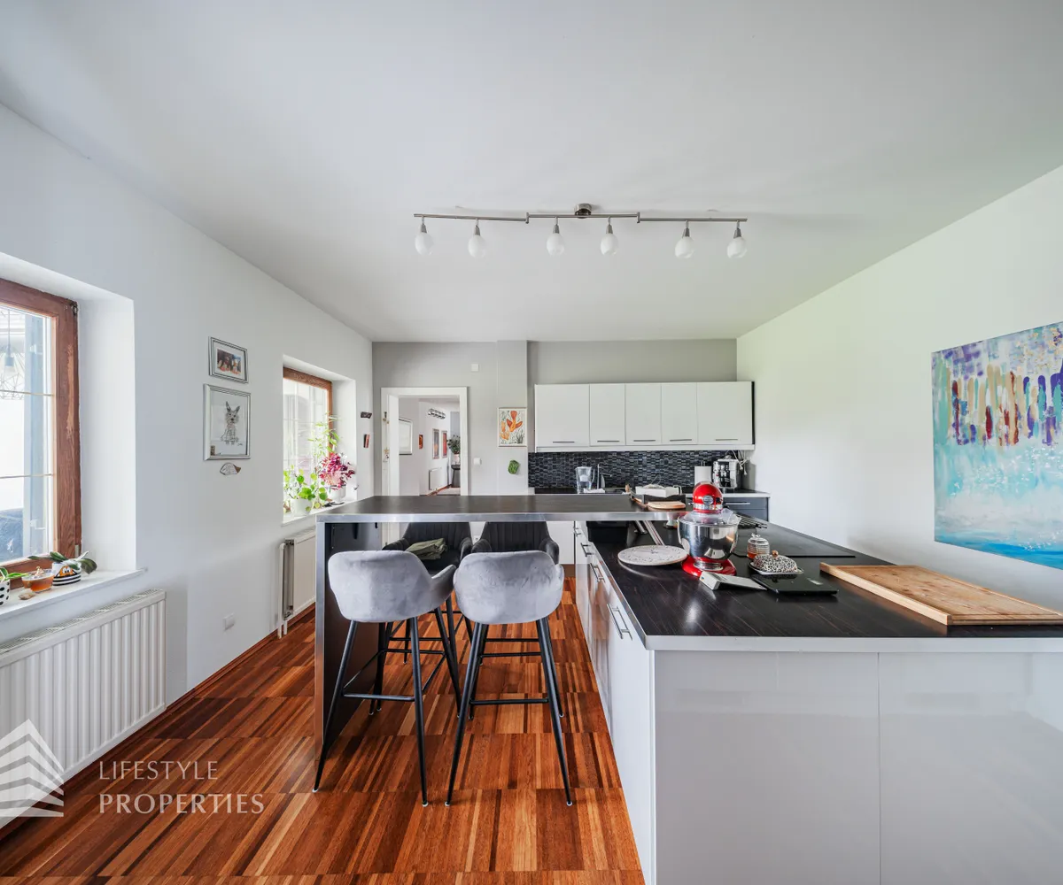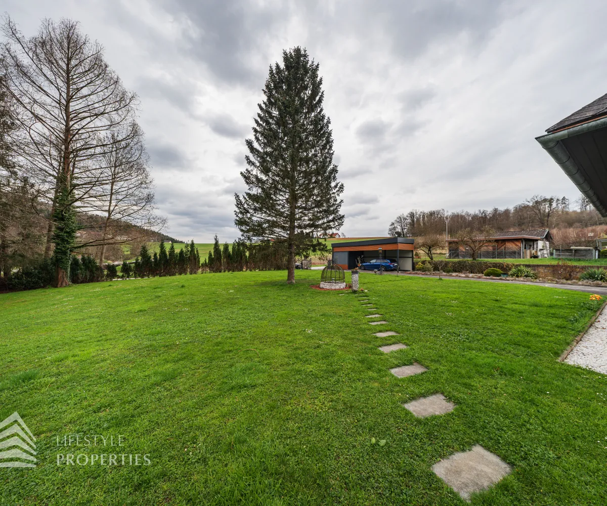 Zum Verkauf gelangt eine wunderschöne Luxus-Landhaus-Villa in ruhiger Lage in Thal bei Graz. Das Haus wurde im Jahr 1976 auf einem großflächigen ca. 1.175 m² großen Grundstück erbaut und im Jahr 2022 mit viel Sorgfalt und hochwertigen Materialien umfassend renoviert. Mit einer großzügigen Gesamtnutzfläche von etwa 450 m² bietet diese Villa ausreichend Platz für eine große Familie sowie komfortables Wohnen mit Stil und Qualität. Die Ausstattung des Hauses lässt keine Wünsche offen. Die Böden in den Wohnräumen sind mit edlem Parkett ausgelegt, während die Nassräume und der Keller mit geschmackvollen Fliesen versehen sind. Beheizt wird das Objekt mittels Ölheizung. Ein weiteres Highlight ist der eigene Wasserbrunnen, der Unabhängigkeit und zusätzliche Versorgungssicherheit bietet.