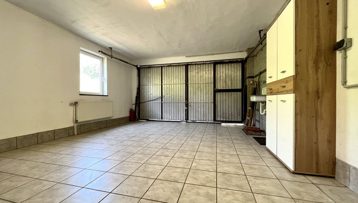 Parken können Sie in der Garage, die über zwei Stellmöglichkeiten verfügt und auf dem Grundstück.