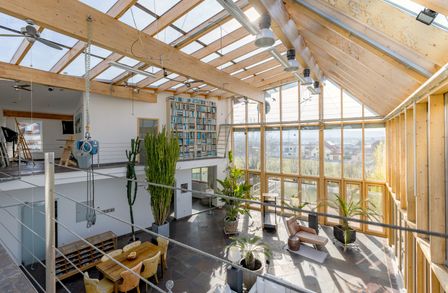gänzlich verglaste und offene Wohnzimmer