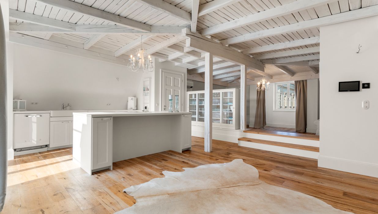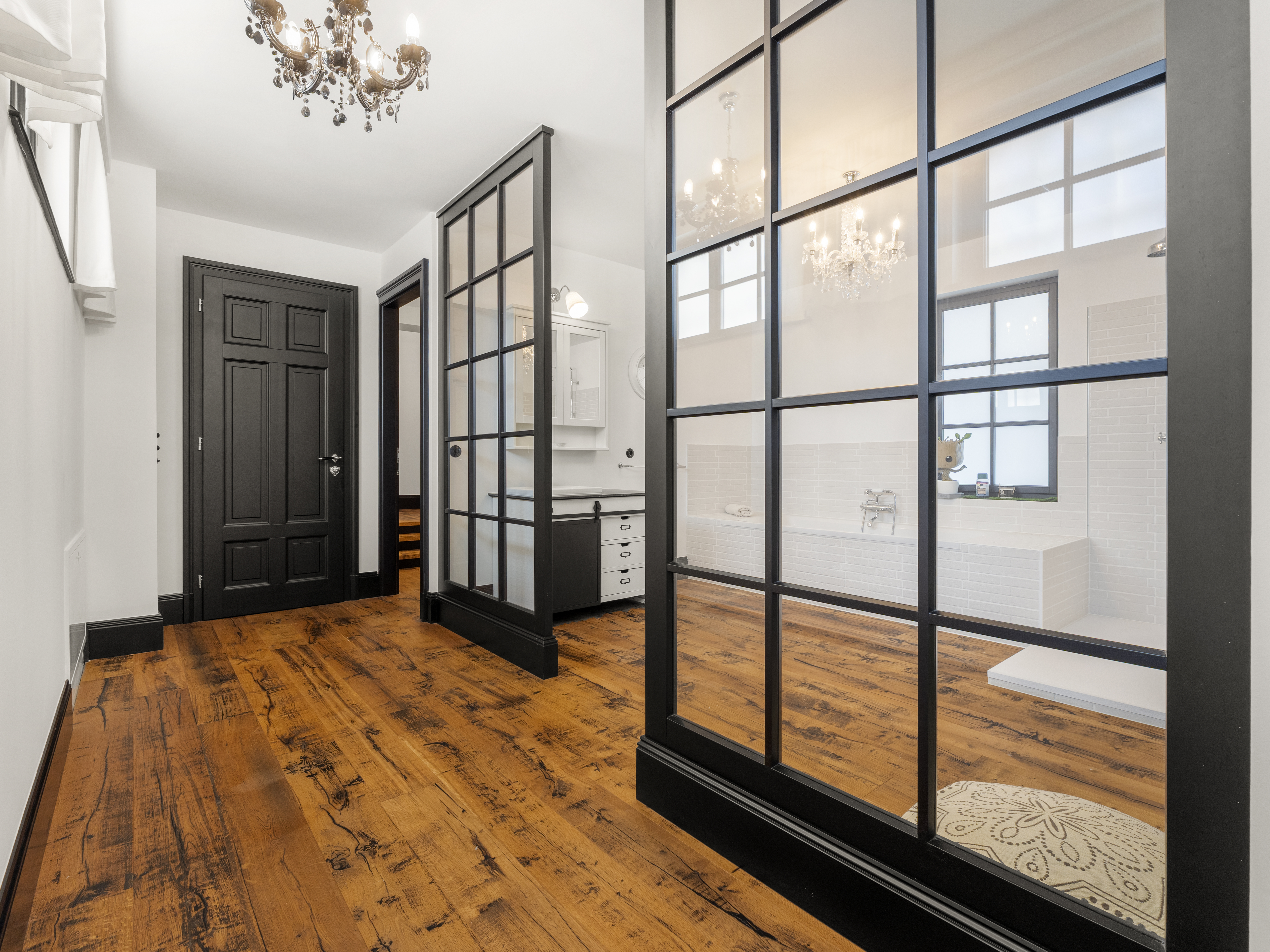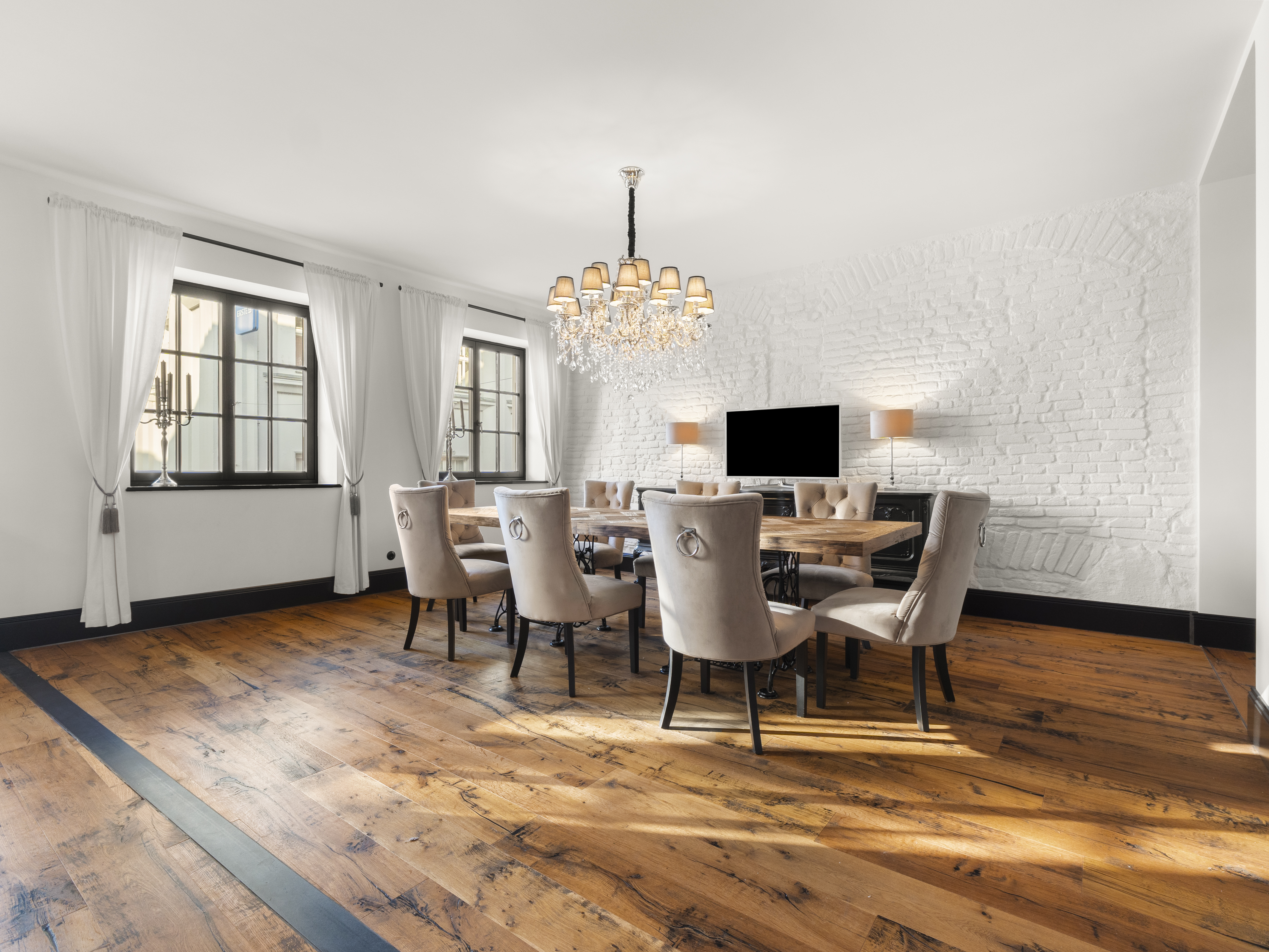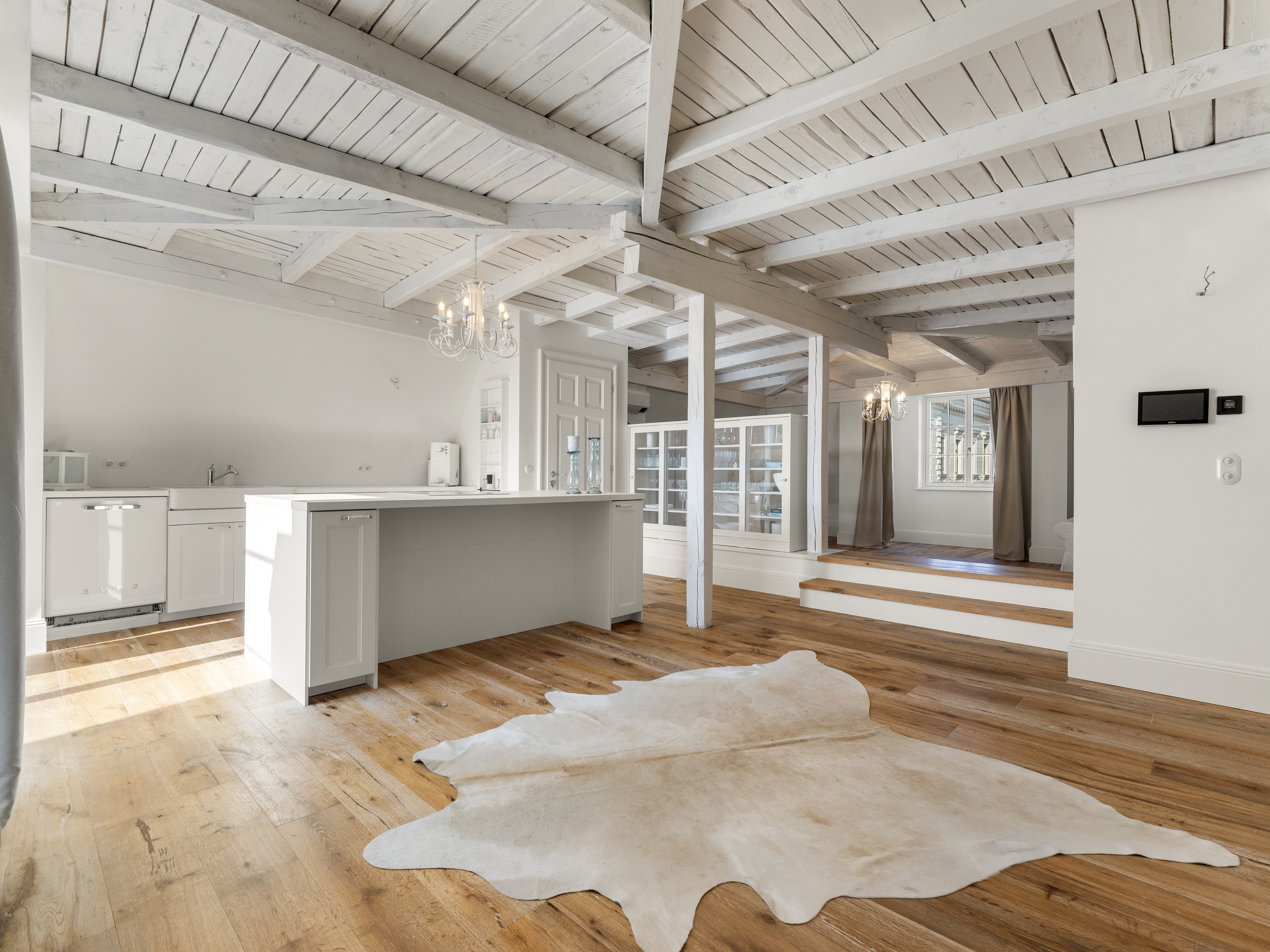 Der private Wohnbereich zeichnet sich durch lichtdurchflutete Räume, großzügige Raumhöhen und eine durchdachte Grundrissgestaltung aus. Insgesamt stehen derzeit sieben Zimmer zur Verfügung, wodurch sich vielfältige Nutzungsmöglichkeiten ergeben – von großzügigem Familienwohnen bis hin zu repräsentativen Home-Office-Lösungen.