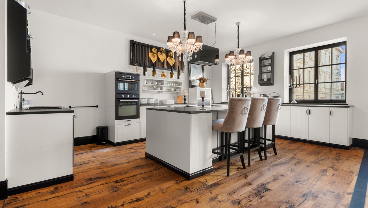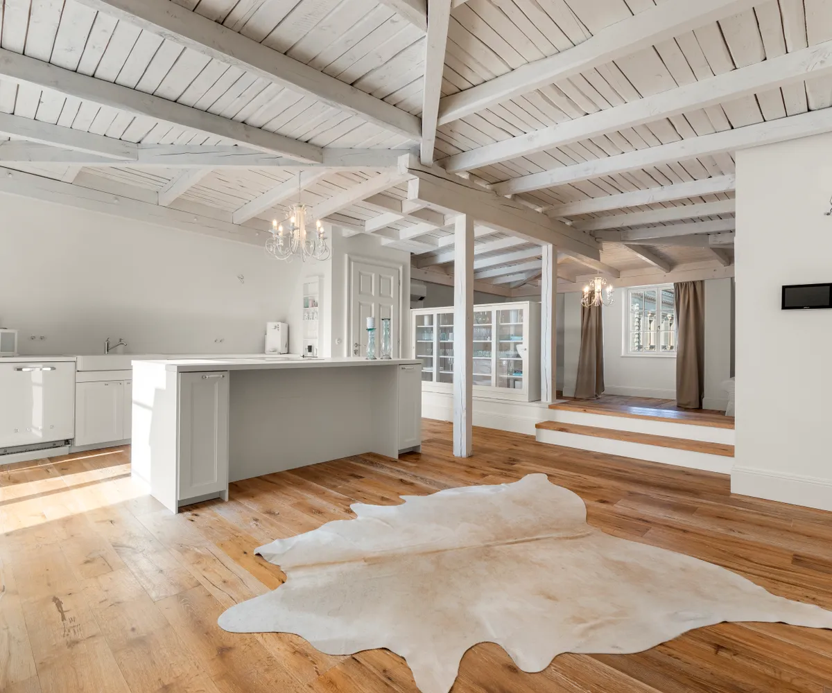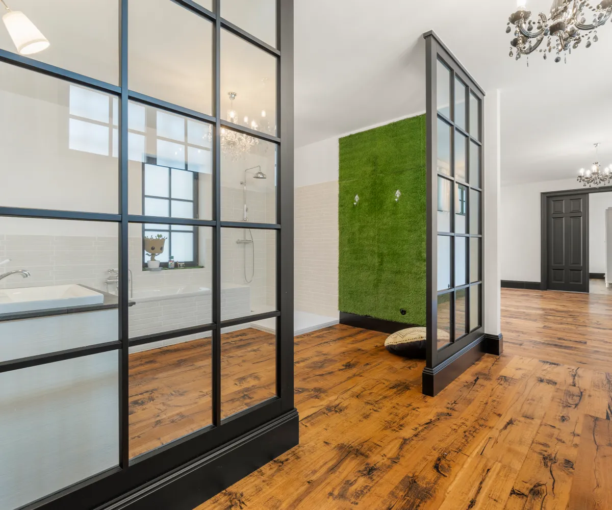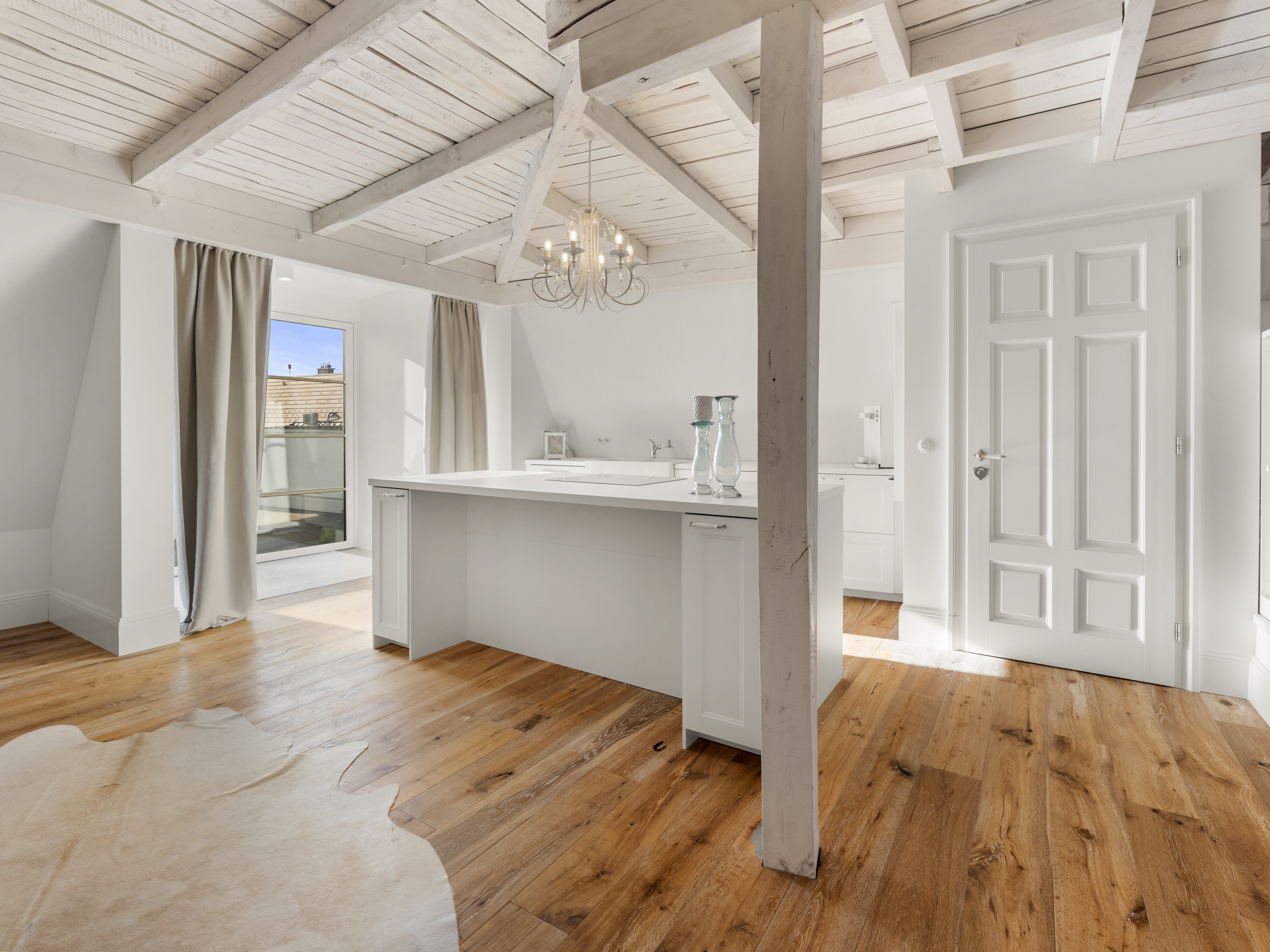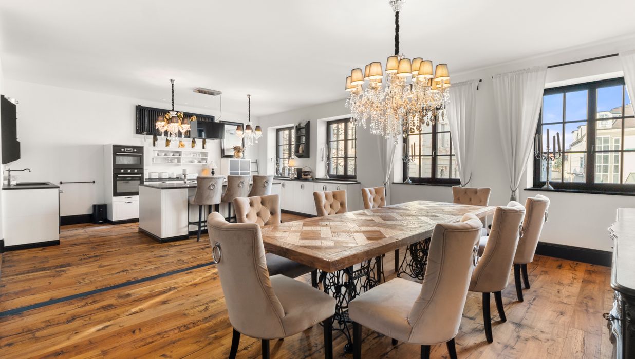 Der private Wohnbereich zeichnet sich durch lichtdurchflutete Räume, großzügige Raumhöhen und eine durchdachte Grundrissgestaltung aus. Insgesamt stehen derzeit sieben Zimmer zur Verfügung, wodurch sich vielfältige Nutzungsmöglichkeiten ergeben – von großzügigem Familienwohnen bis hin zu repräsentativen Home-Office-Lösungen.