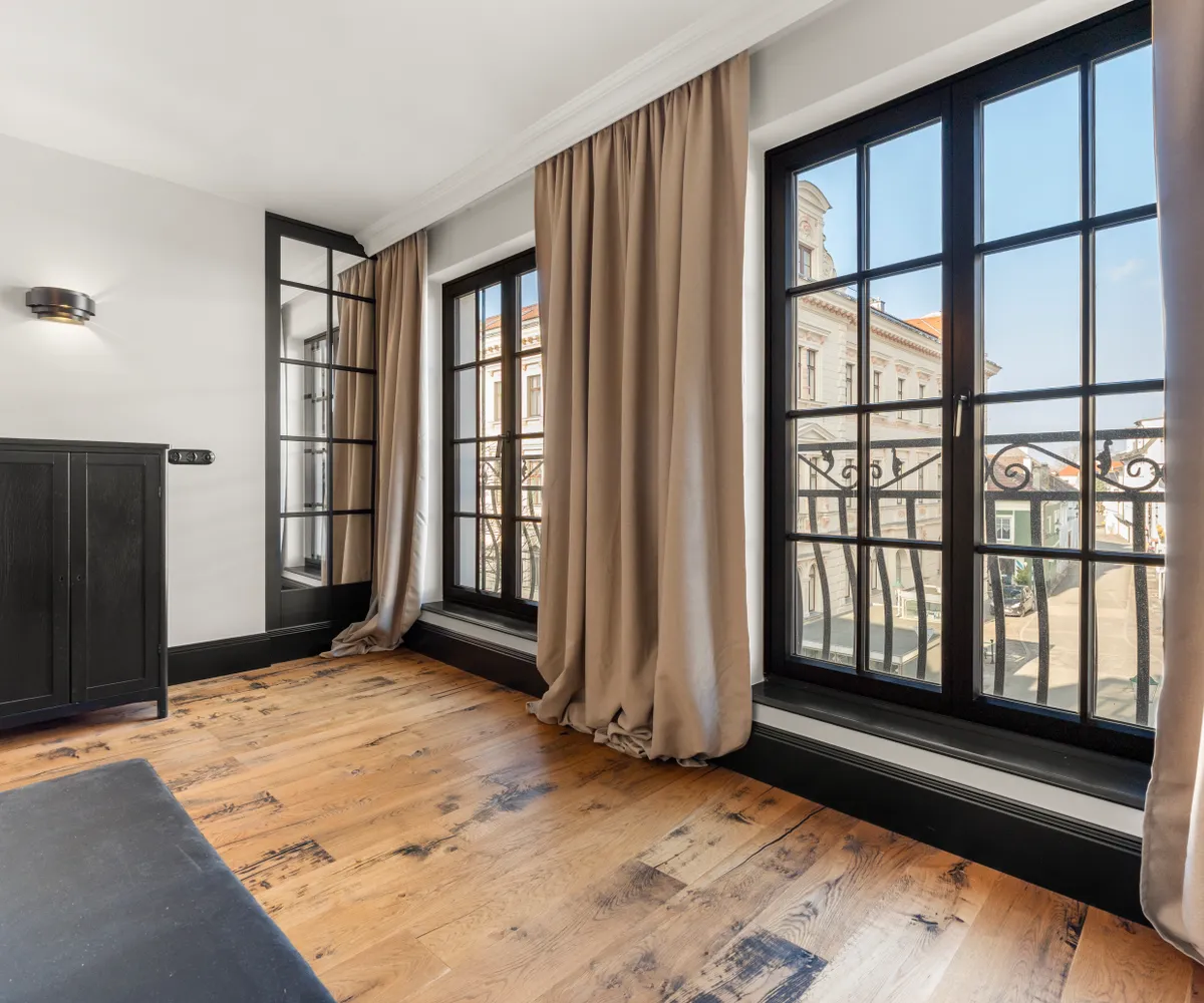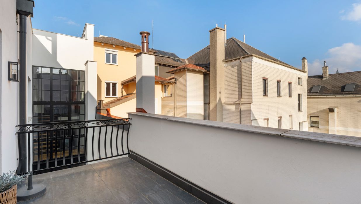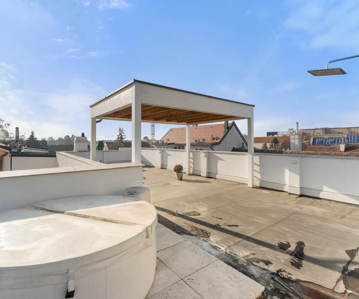 Ein besonderes Merkmal der Liegenschaft sind die außergewöhnlichen Freiflächen in zentraler Innenstadtlage. Die großzügige Dachterrasse mit rund 91 m² bietet einen freien Panoramablick über den Hauptplatz bis in Richtung Donau. Ergänzt wird das Angebot durch einen privaten Innenhof im 1. Obergeschoss sowie eine weitere Terrasse im 2. Obergeschoss, die geschützte Rückzugsorte zu unterschiedlichen Tageszeiten ermöglichen.