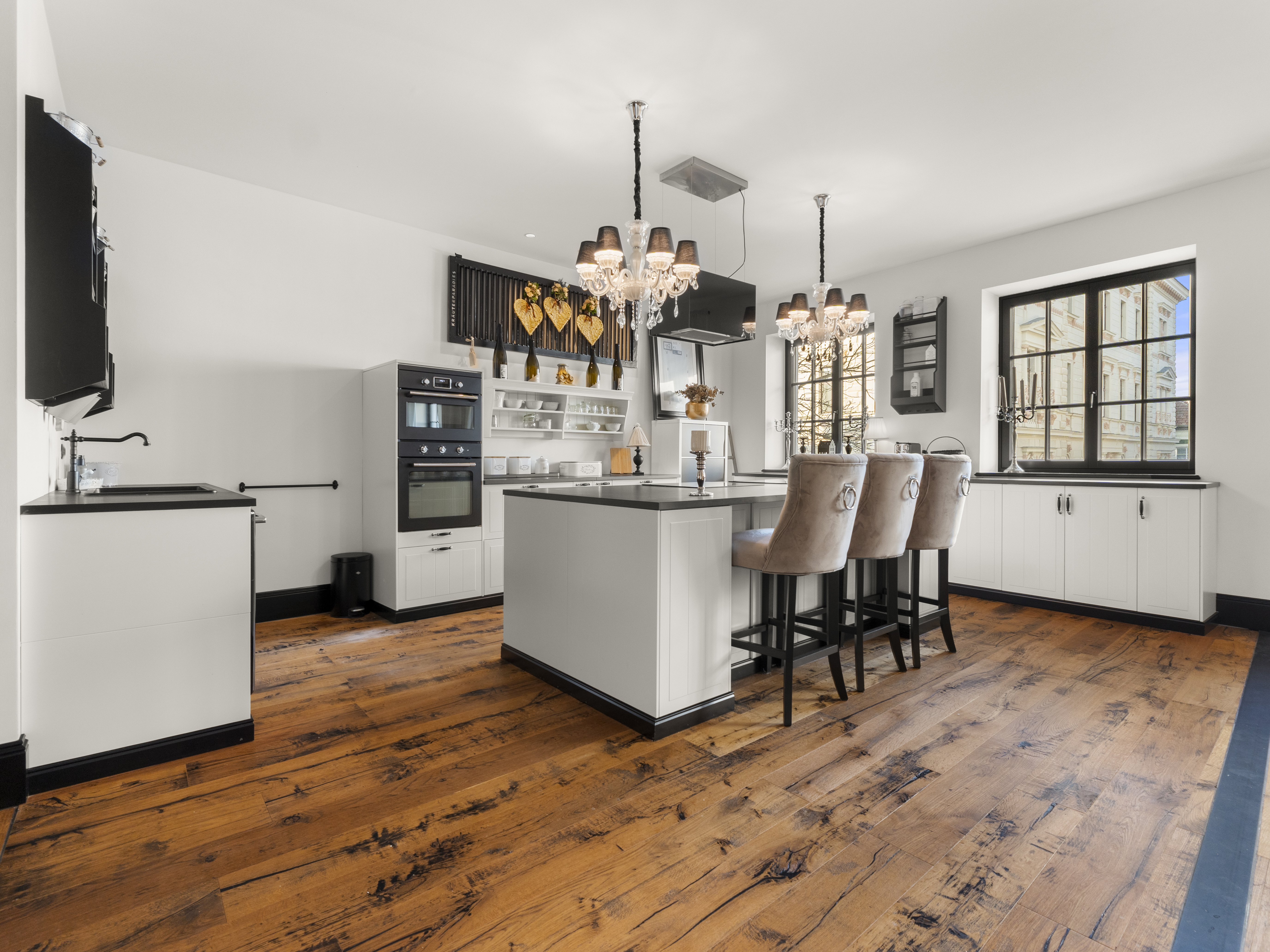 Der private Wohnbereich erstreckt sich über mehrere Ebenen mit mehr als 460 m² Wohnfläche und bietet ein außergewöhnlich großzügiges Raumgefühl. Ergänzt wird das Nutzungskonzept durch hochwertig vermietete Geschäftseinheiten im Erdgeschoss, die einen wesentlichen Beitrag zur laufenden Finanzierung leisten und das Objekt auch aus wirtschaftlicher Sicht besonders attraktiv machen.